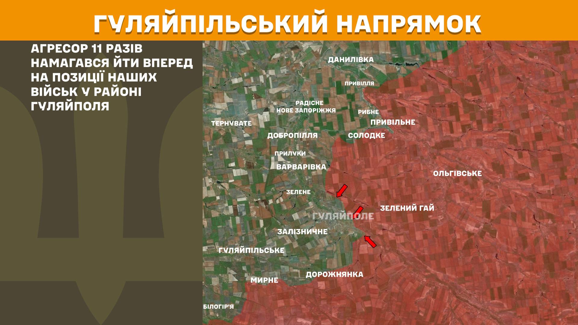 На Гуляйпольском направлении агрессор сосредотачивает усилия на городе – 11 раз пытался идти на украинские позиции в районе Гуляйполя.