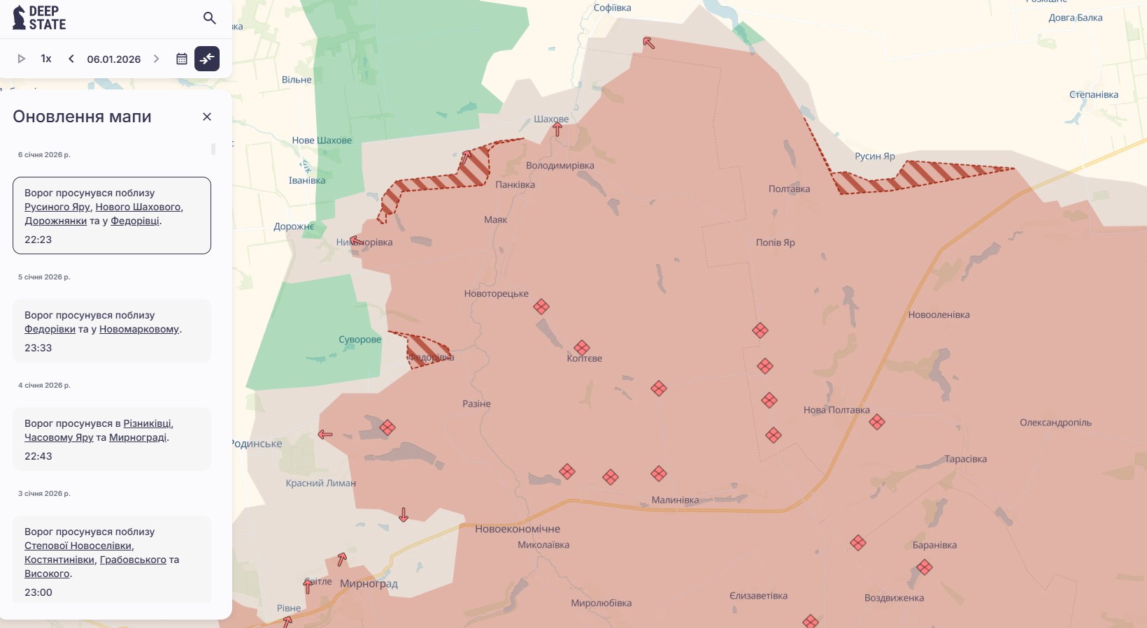 Очередное продвижение врага на карте боевых действий обозначил украинский аналитический проект DeepState.