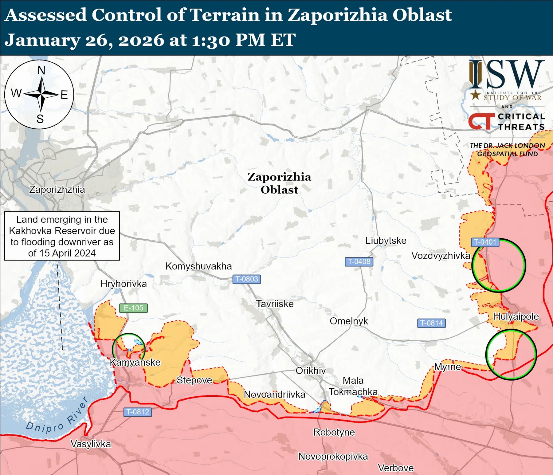 "26 января российские войска продолжили наступательные операции на западе Запорожской области, но не продвинулись вперед", – заявили эксперты.