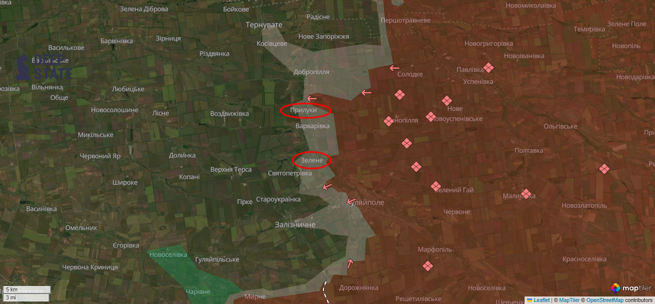 Россияне продвинулись вблизи Прилук и Зеленого, передает "Справжнє" со ссылкой на DeepState.