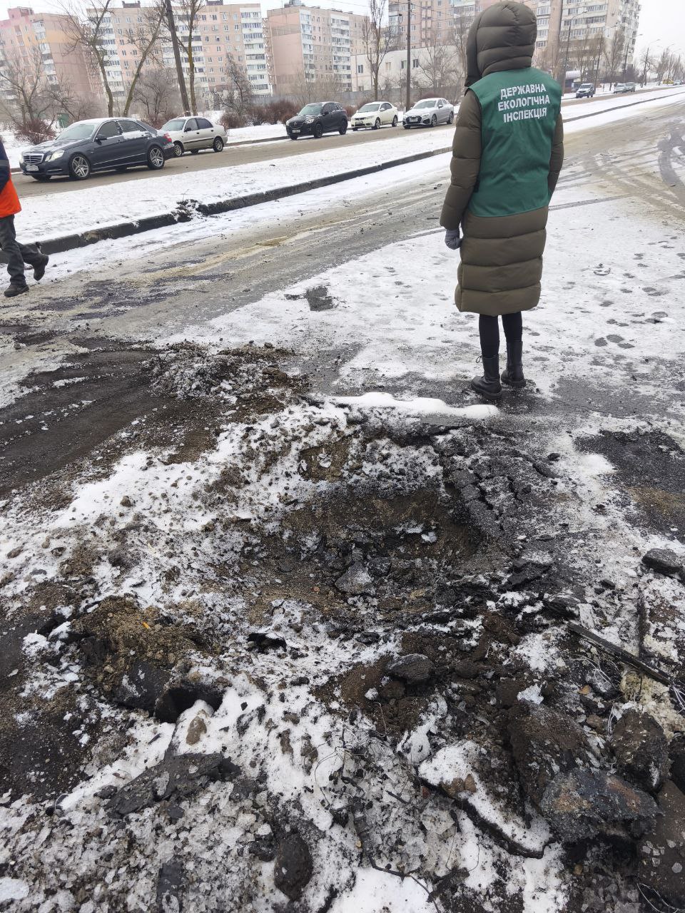 В результате взрывов обломками и строительным мусором было загрязнено более 150 квадратных метров территории района, а на месте попадания образовалась воронка площадью около 4 квадратных метров.