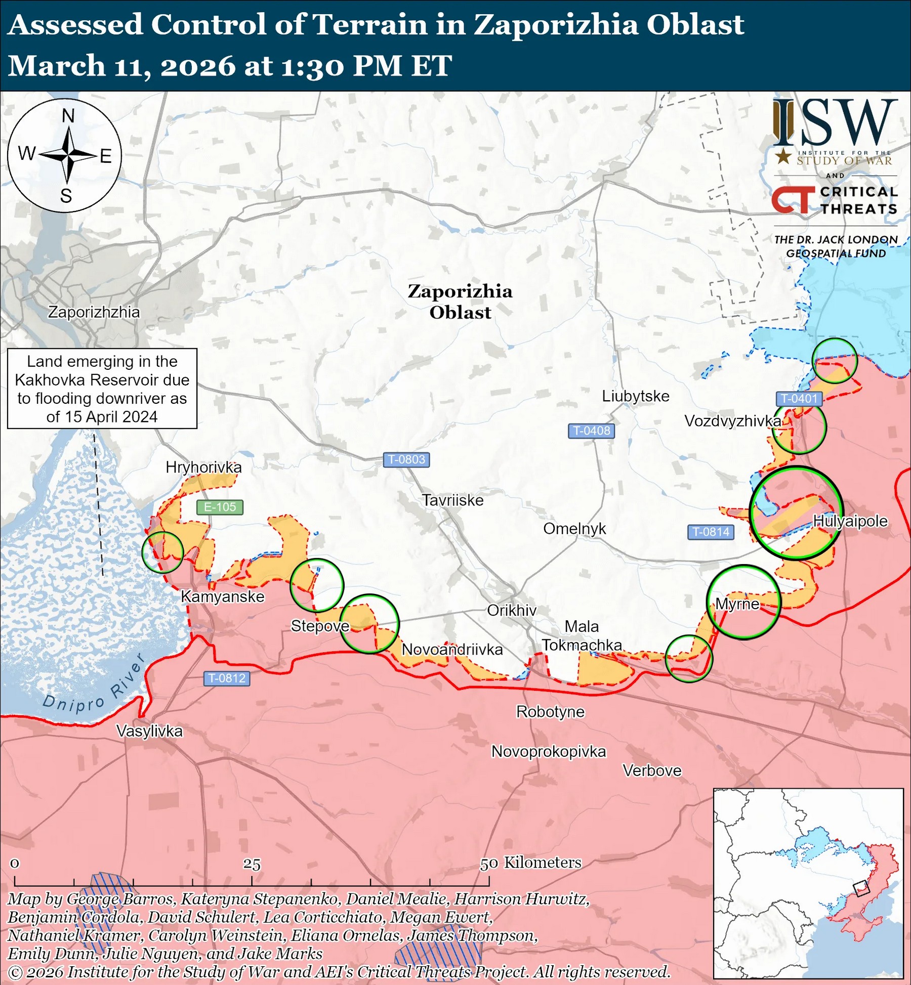 По оценкам экспертов, 11 марта армия РФ продолжила наступательные операции на западе Запорожской области (Ореховском направлении), но не продвинулась вперед.