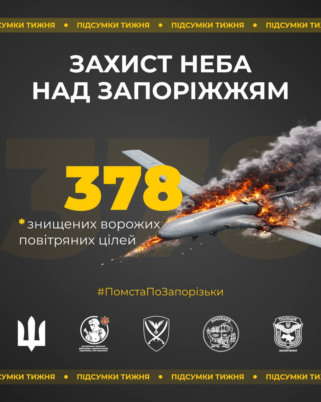378 вражеских беспилотников уничтожили подразделения Сил обороны Украины над Запорожьем за неделю. Об этом сообщил глава ОВА Иван Федоров, информирует "Справжнє".