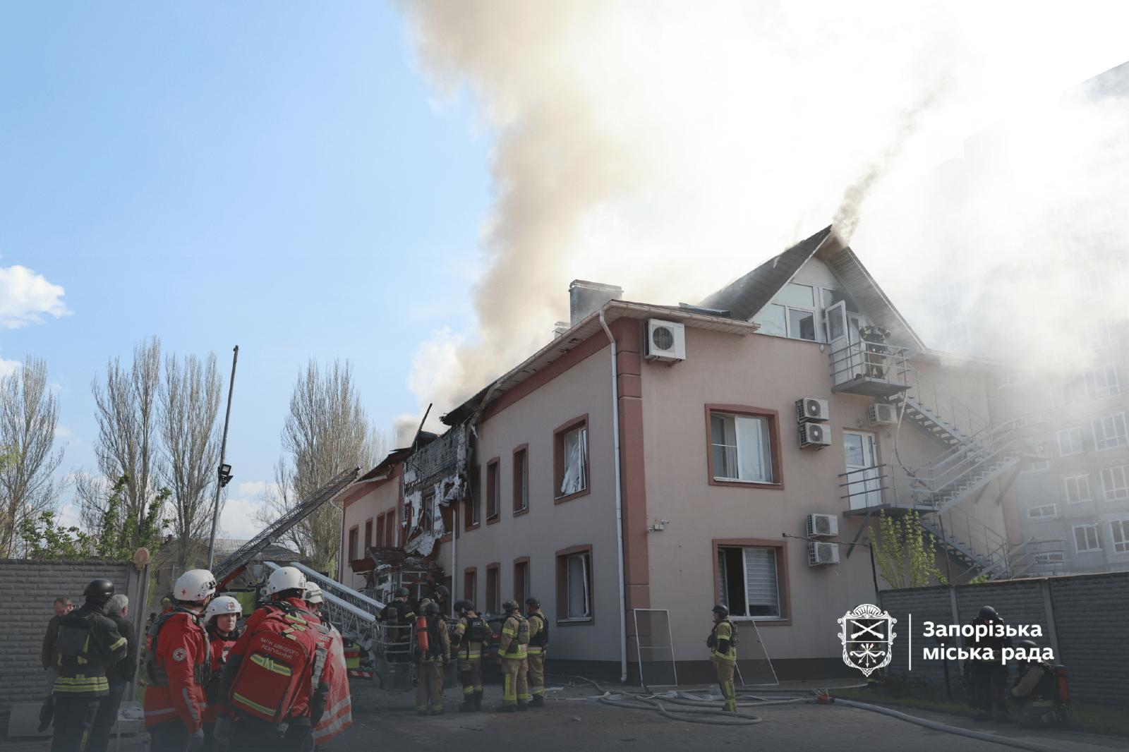 Напомним, утром понедельника, 13 апреля, российские войска атаковали дроном жилой квартал Запорожья. Последствия этой атаки показали спасатели.
