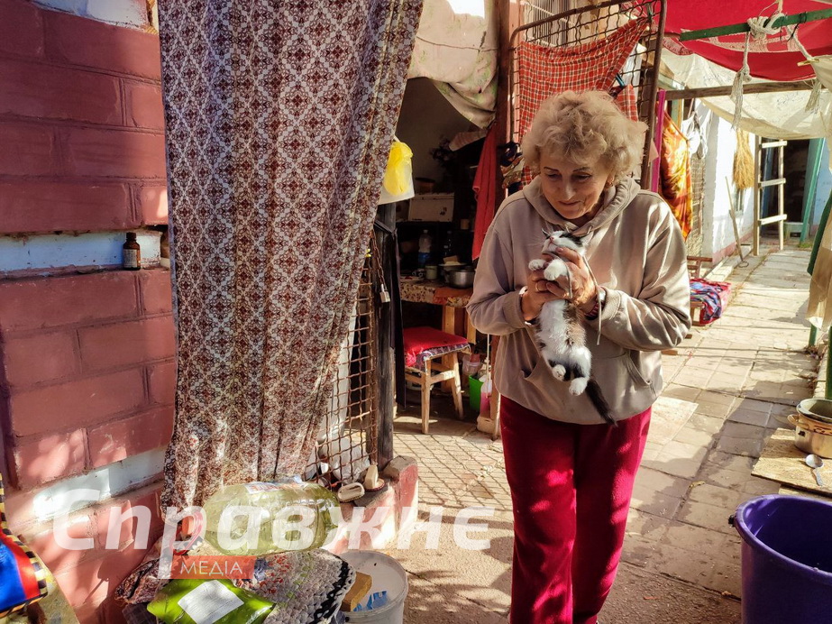 "Я виїздила. Син помер на першому році війни. І я не могла тут перебувати взагалі, і виїхала в Запоріжжя. У Запоріжжі рік була, а потім повернулась. Приїхали додому, бо свої стіни гріють. І земельку обробляємо, і квіточки. Вдома є вдома", – наголошує жінка.