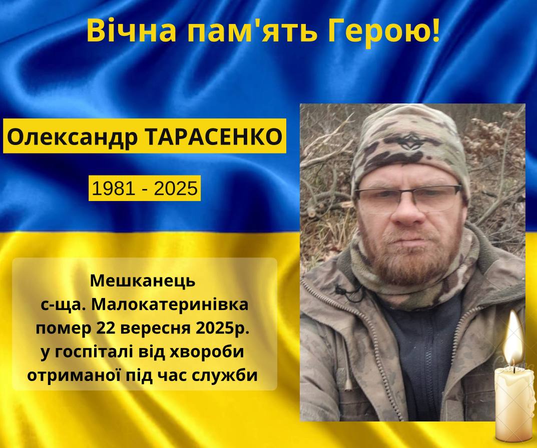 22 вересня зупинилося серце 44-річного захисника із Запорізького району Олександра Тарасенка. Про це інформує "Справжнє” з посиланням на Кушугумську селищну раду.