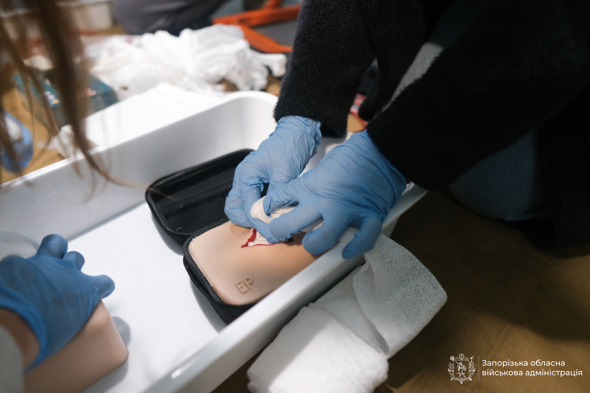 За чотири дні заняття пройшли понад 90 учнів. Підлітки вчаться накладати турнікети, тампонувати рани, користуватися муляжами та тренувальними матеріалами, які надали безоплатно.