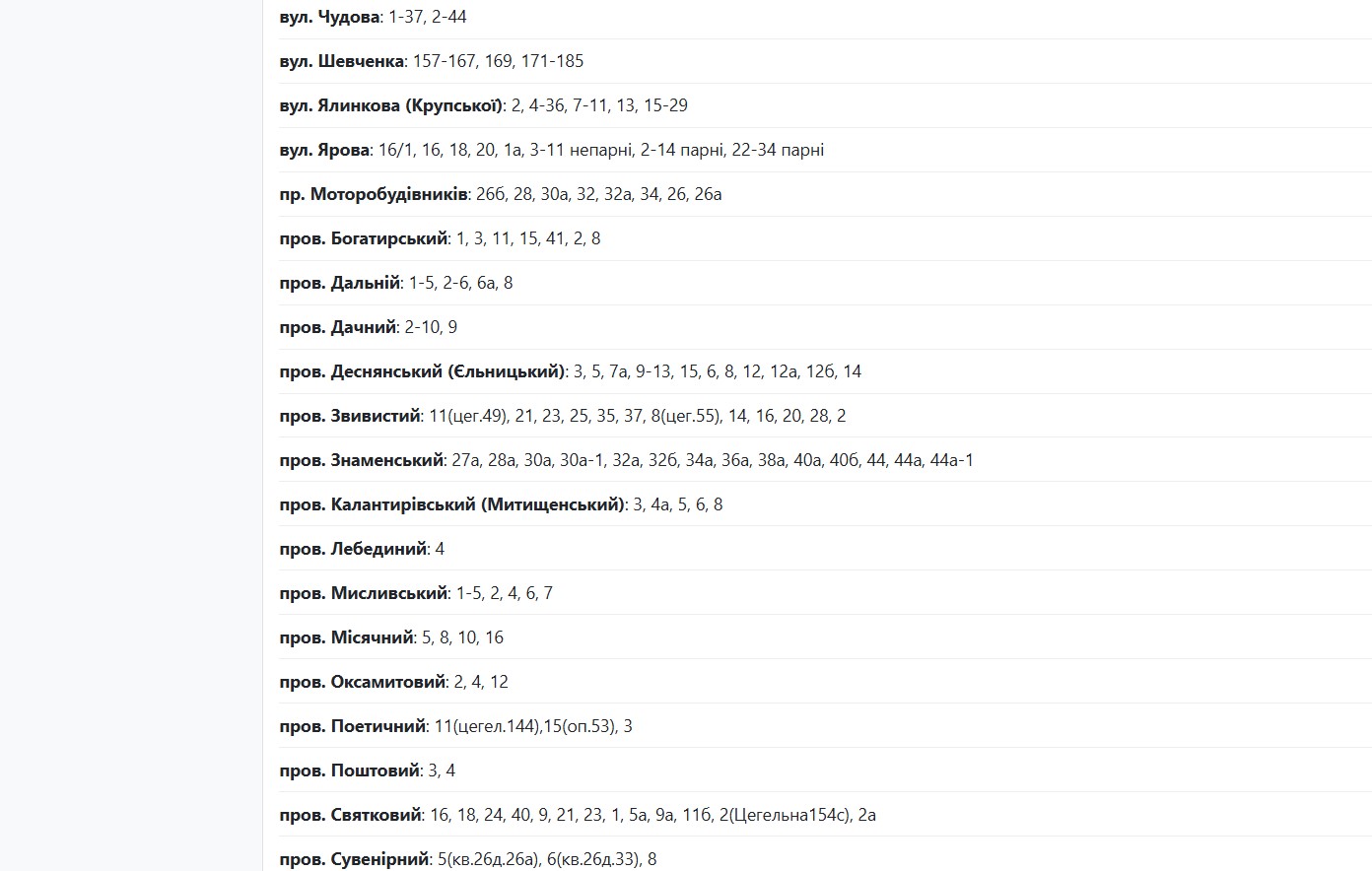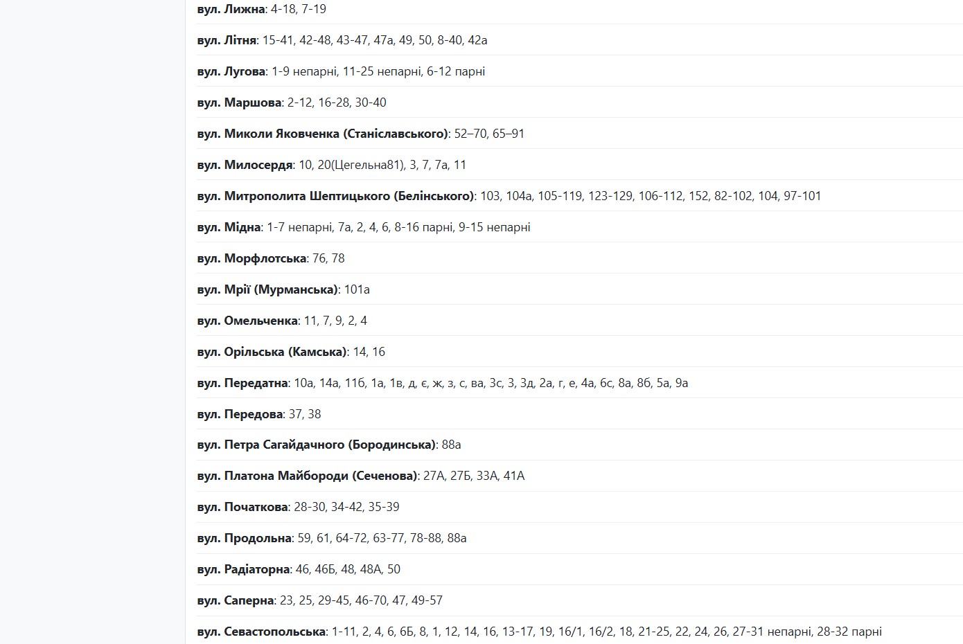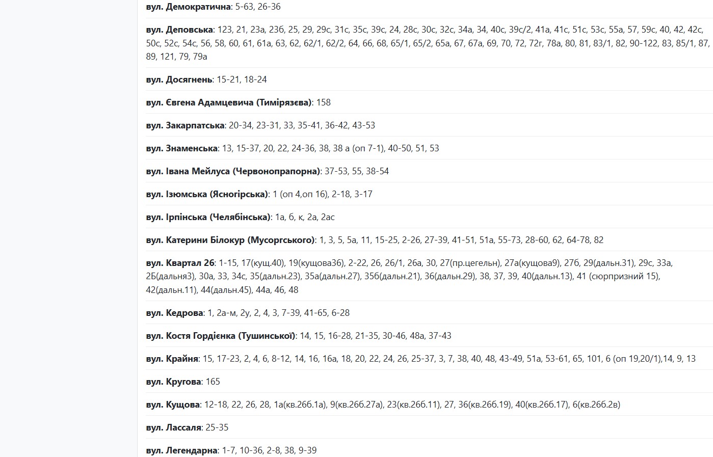 Із 08:00 до 17:00 через плановий ремонт електрообладнання світла не буде за адресами: