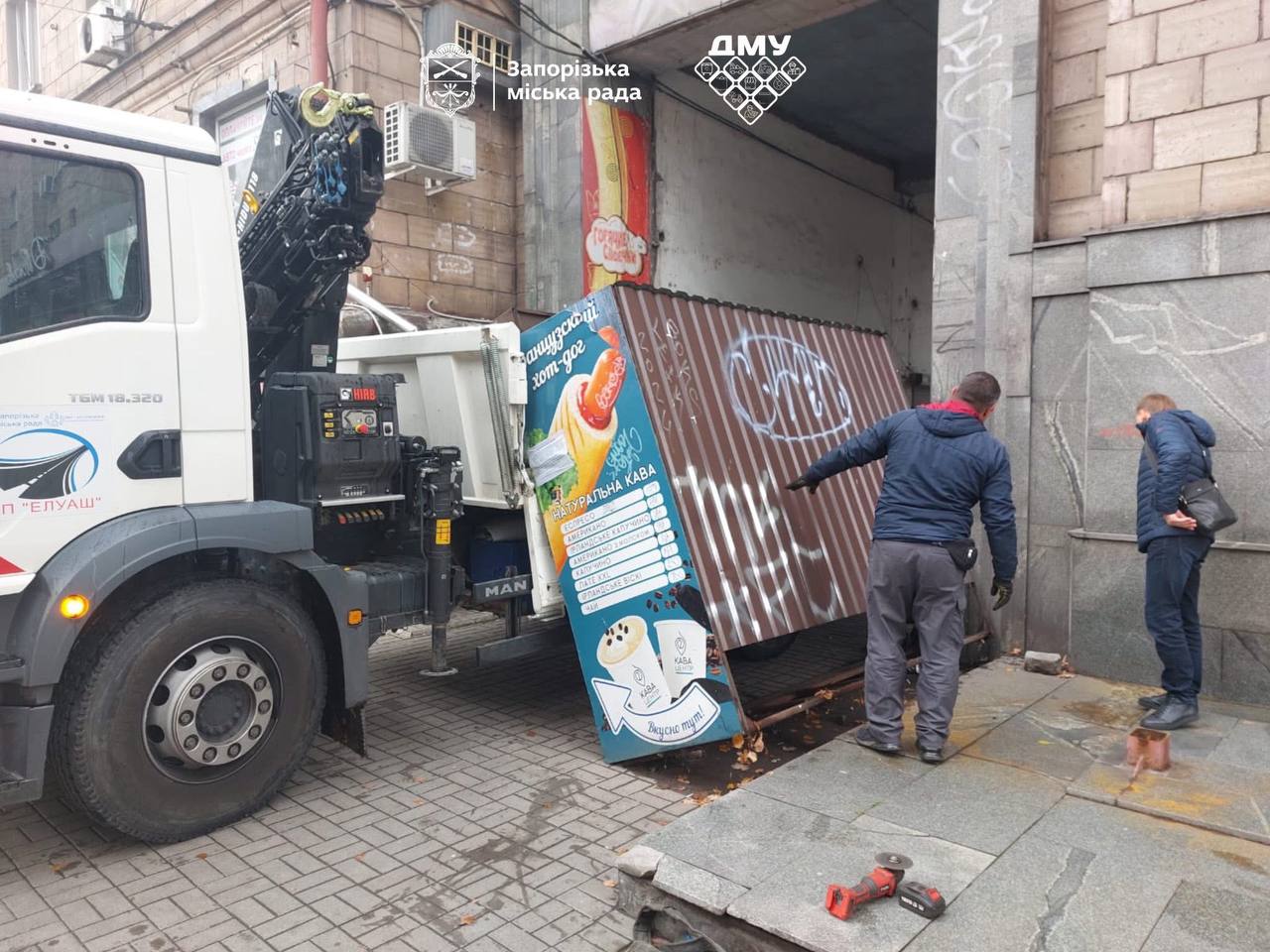 Запорізькі комунальники прибрали кіоск із напоями та фастфудом, який роками стояв поблизу кінотеатру ім. Довженка. Про це повідомляє "Справжнє” з посиланням на міськраду.