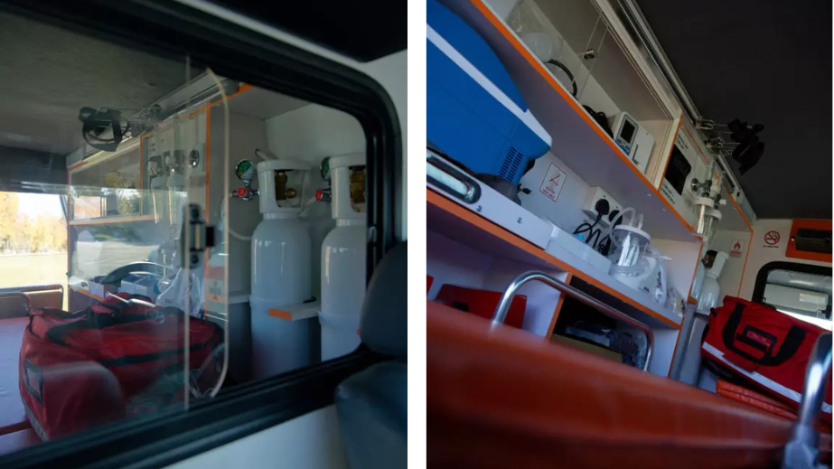Транспортні засоби укомплектовані сучасним медичним обладнанням, яке відповідає міжнародному стандарту IMAS 10.40 (Медичне забезпечення під час операцій з розмінування).