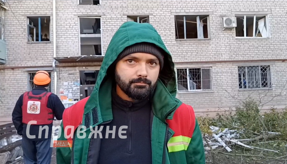 "У наш будинок не влучило – у гуртожиток, однак вибуховою хвилею бік, що виходить на гуртожиток, розтрощило. У мене квартира в середині, вікна на протилежний бік, то в мене тільки двері постраждали", – каже запоріжанка.