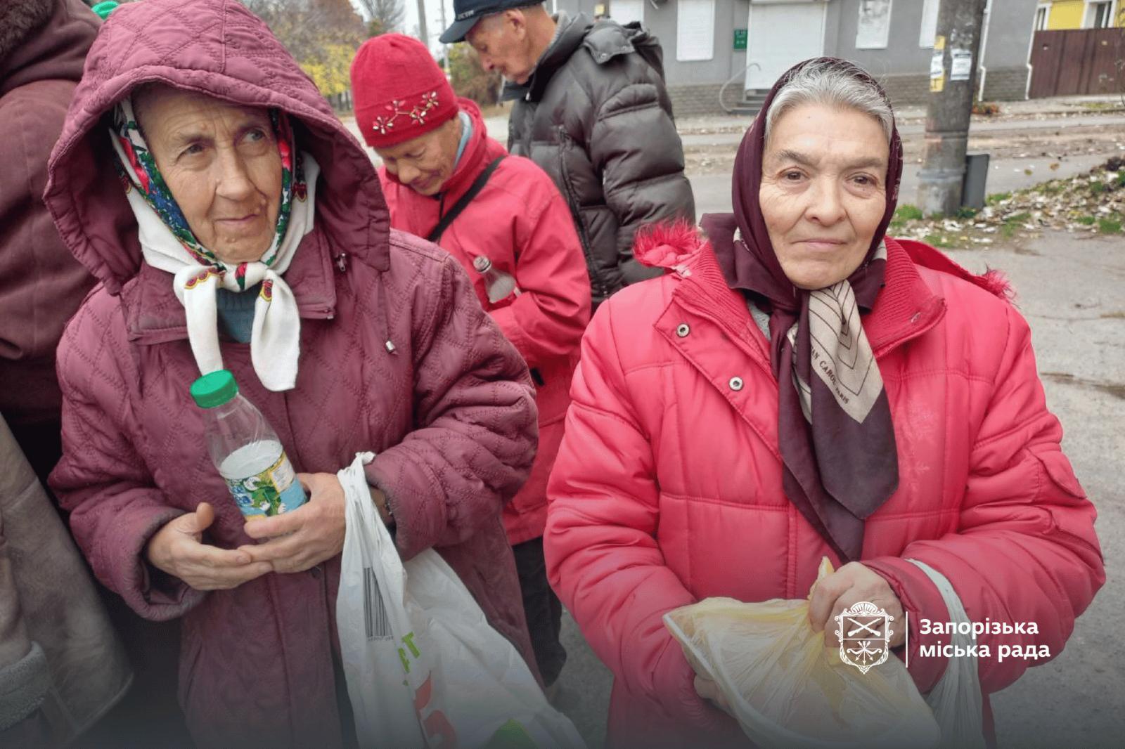 Гарячі обіди для нужденних у Запоріжжі готує приватна фірма. Кожна порція складається з хлібу, каші, чогось м’ясного – тефтель, ковбаси, тощо, а також обов’язково з гарячого чаю з цукром. Один такий продуктовий набір коштує 45 гривень.