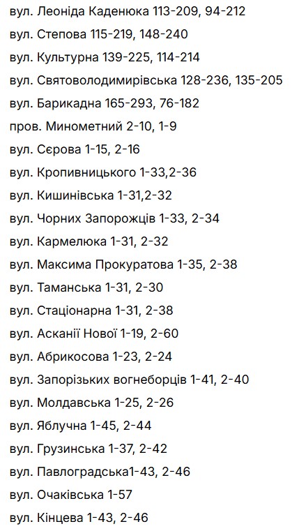 Загалом без водопостачання – близько 2 660 містян, які мешкають за адресами: