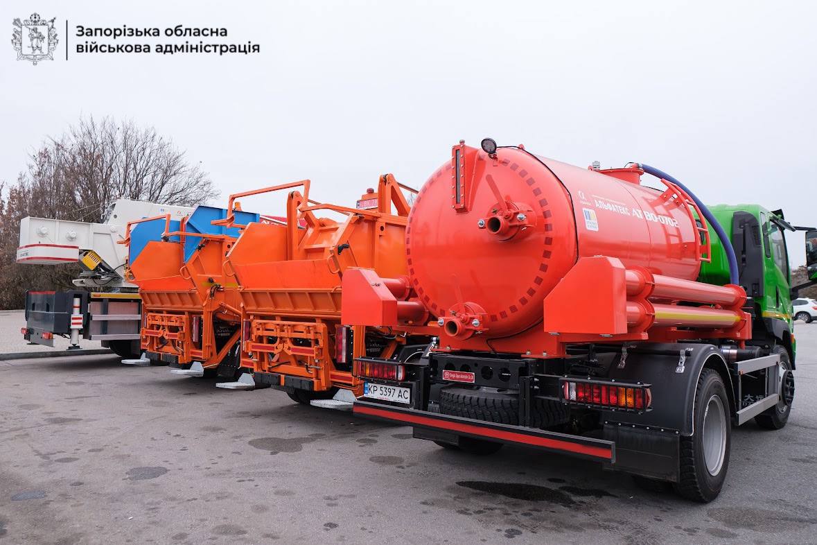 Запорізькі КП "ЕЛУАШ" та КП "Запоріжміськсвітло" отримали два сміттєвози із заднім навантаженням, причіпний трейлер високого тиску та автокран вантажопідіймальністю 18 тонн.