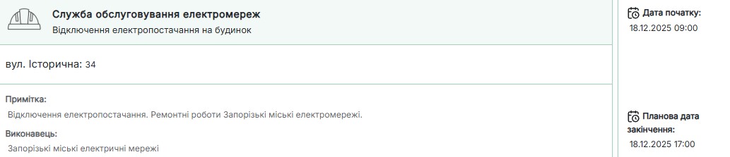 Нагадаємо, на Запоріжжі 18 грудня відповідно до вказівок Укренерго продовжують застосовувати погодинні відключення електрики для населення.