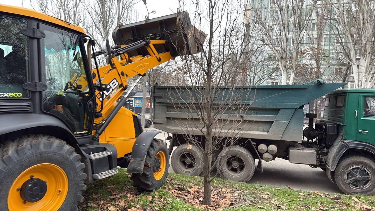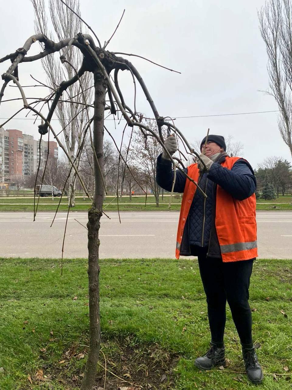Паралельно комунальники наводили лад у дворах та парках Хортицького району: прибирали сміття на дитячих майданчиках і автобусних зупинках, вивозили купи листя та гілок з кількох вулиць і ремонтували вуличне освітлення на Сорочинській.