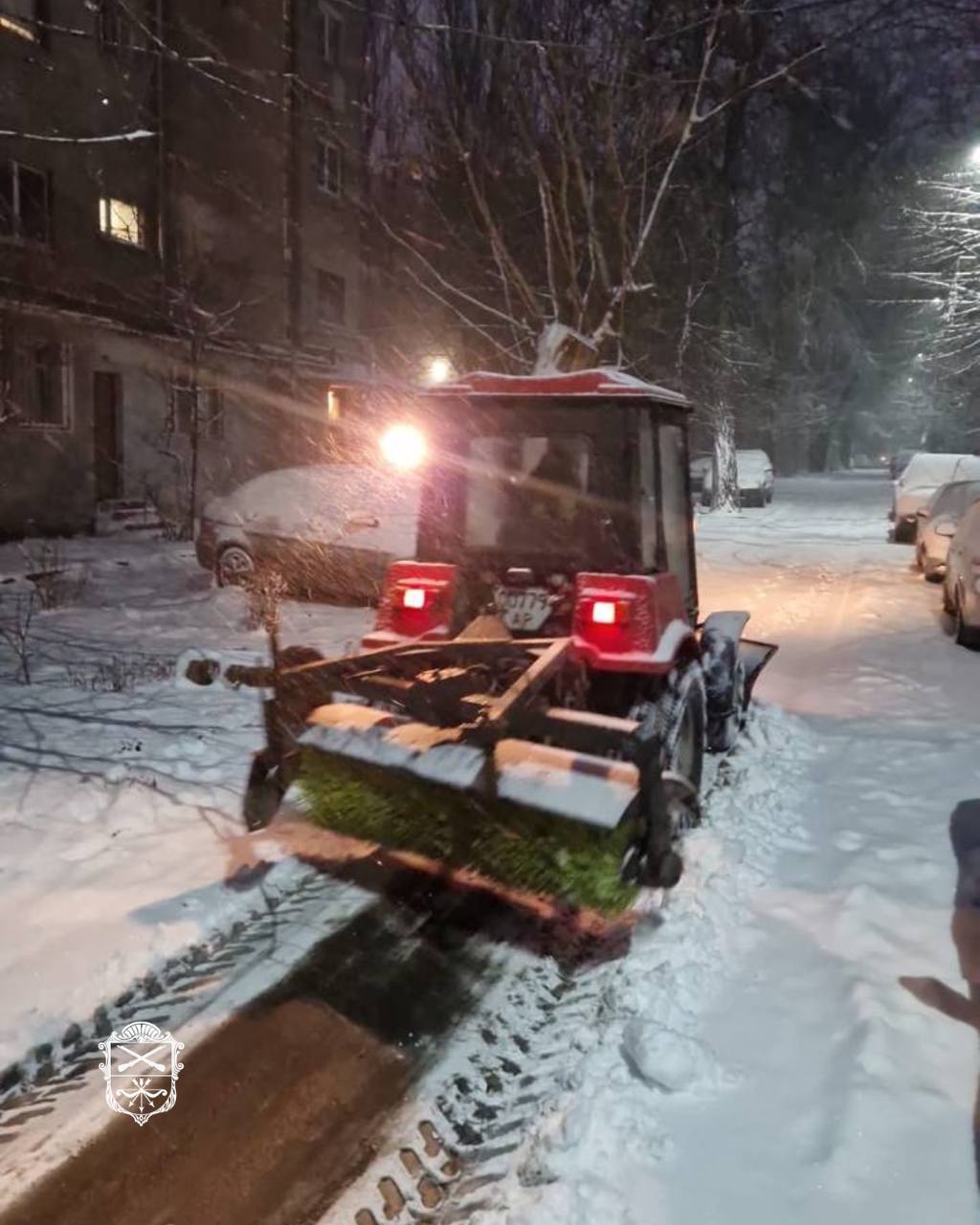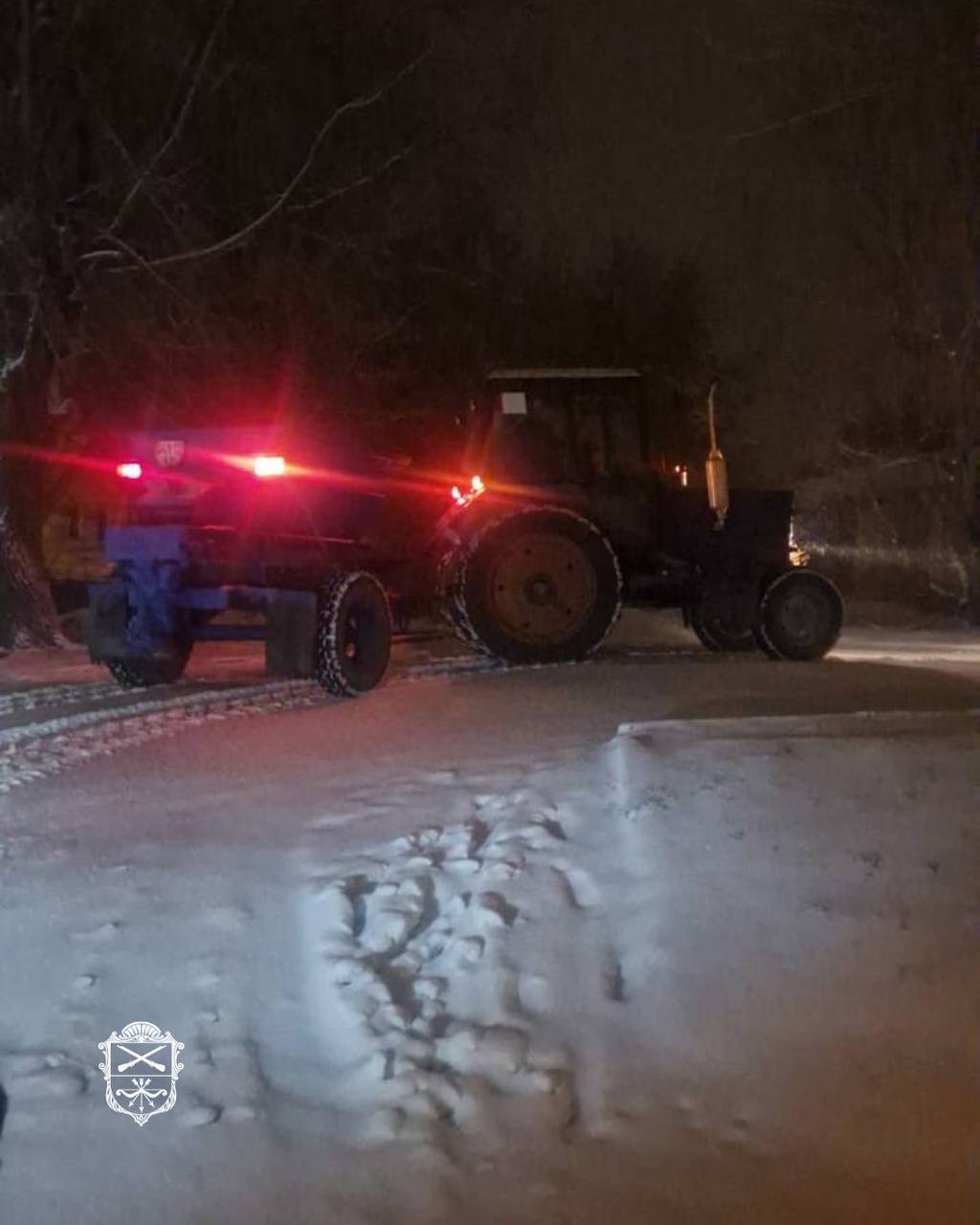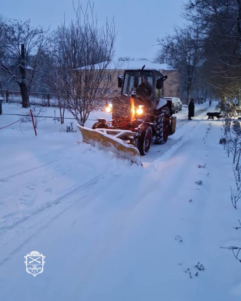 Фахівці комунальних служб прибирають сніг, очищують проїжджу частину та тротуари. Спецтехніка обробляє покриття протиожеледними матеріалами.