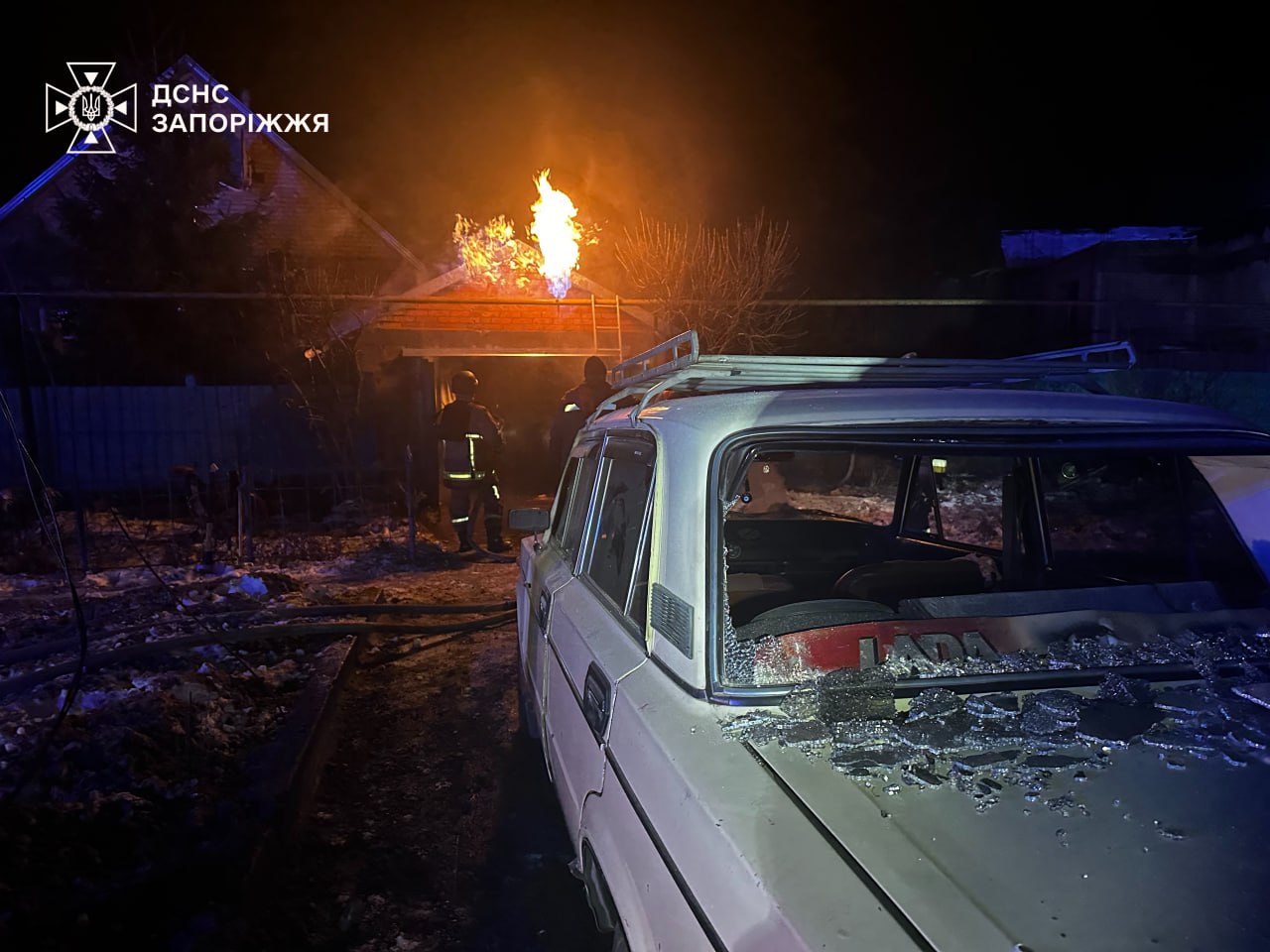Відомо, що через удар у приватному секторі спалахнув дах господарчої споруди на площі 50 "квадратів". Унаслідок пошкодження газопроводу сталося витікання та загоряння газу.