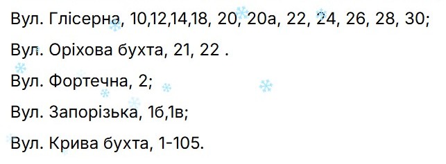 Причина – аварійні ремонтні роботи на водоводі діаметром 1000 мм на вулиці Фортечній. Загалом без водопостачання до завершення робіт – 1 890 містян, які мешкають за наступними адресами: