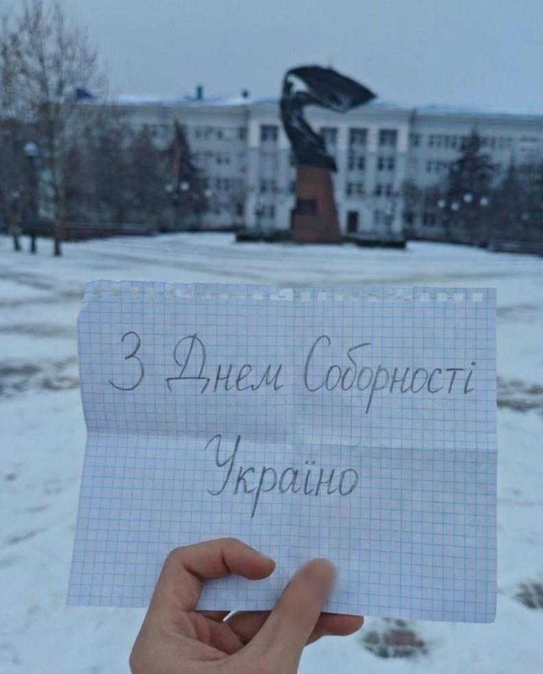 Сьогодні, 22 січня, активісти – від Криму до Бердянська, від Алушти до Луганська – об’єдналися, щоб привітати Україну з державним святом – Днем Соборності. Про це повідомляє "Справжнє" з посиланням на рух опору "Жовта стрічка".