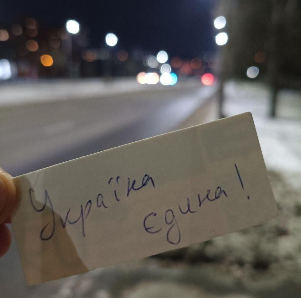 "Україна єдина навіть у найтемніші часи. Бердянськ, Донецьк, Сімферополь, Ялта, Луганськ, Бахчисарай, Перевальськ, Горлівка. Зі святом, рідна Україно! Ми – єдині!" – наголошують активісти.