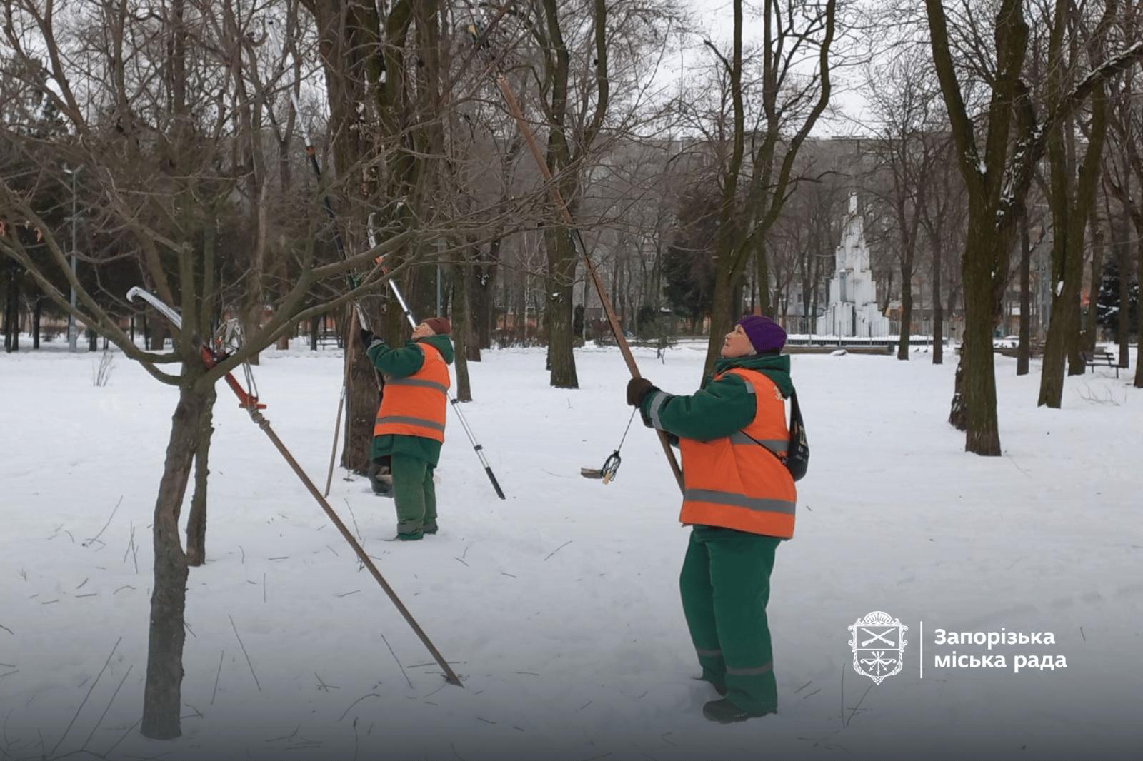 Зокрема, фахівці Зеленбуду в парку Авіаторів обрізають дерева, поки ті ще "сплять". Роблять це під час морозів, щоб не нашкодити деревам, адже зазвичай у березні вже розпочинається рух соку.