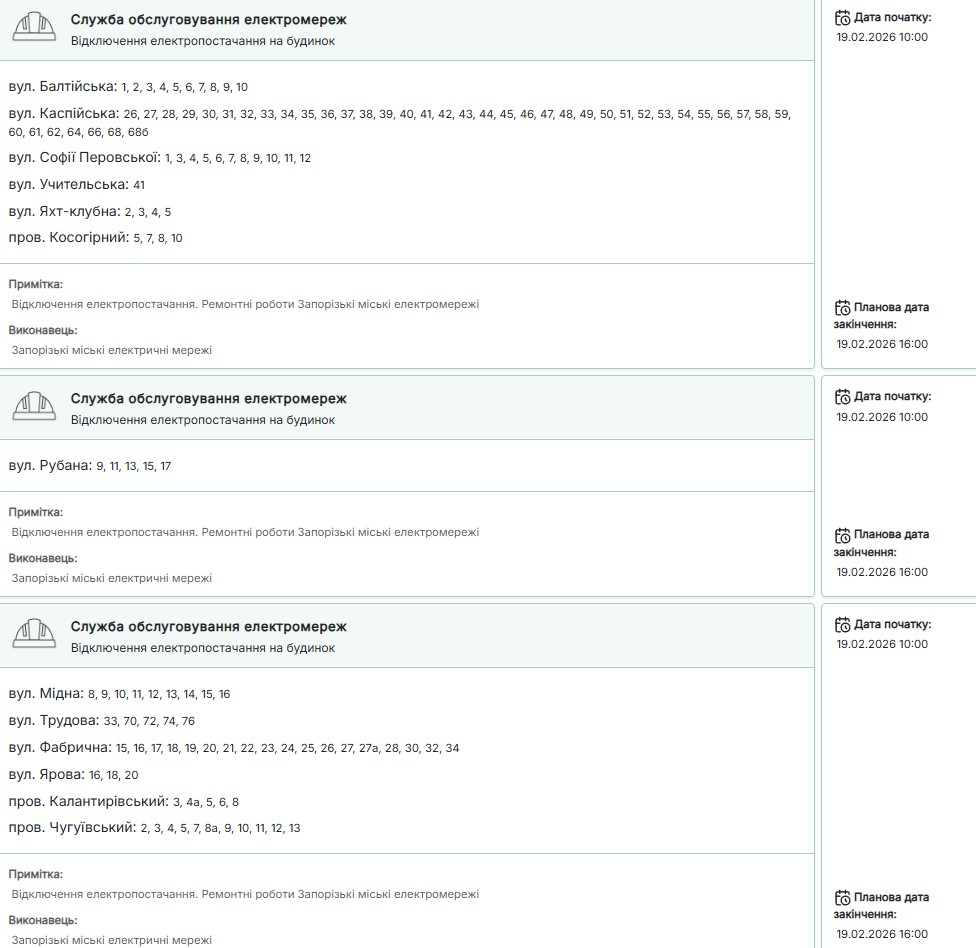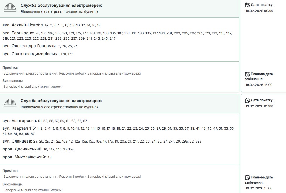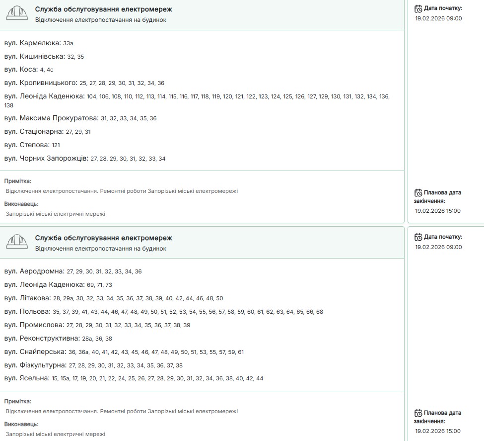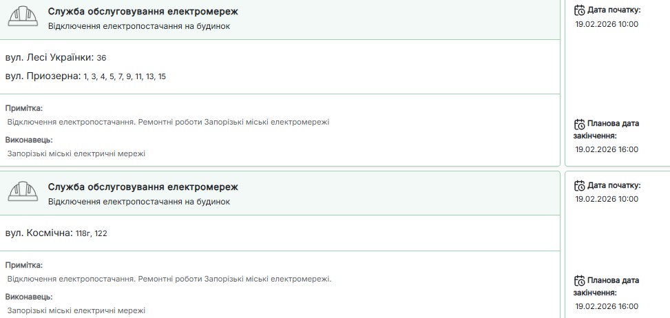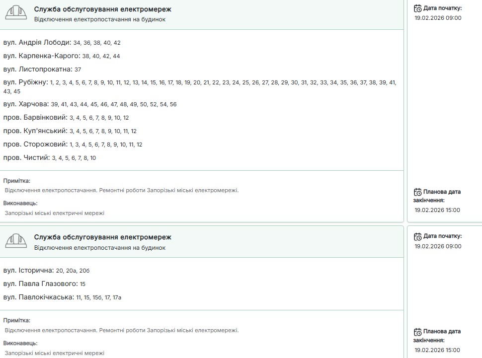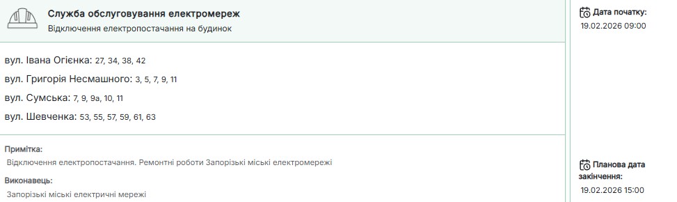 Нагадаємо, сьогодні, 19 лютого, протягом доби світла у запоріжців не буде 12-14,5 години.