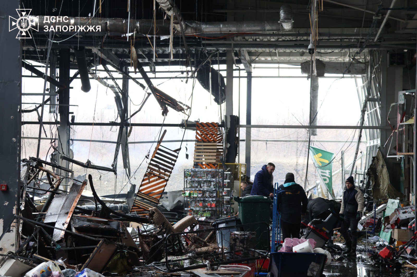 Надзвичайники оприлюднили масштаби руйнувань в одному з торговельних центрів популярної мережі. Всередині – сліди пожежі, пошкоджений товар та потрощені полиці.