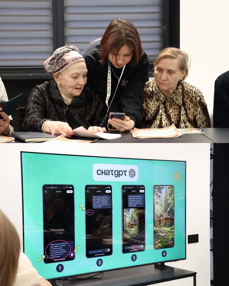 Під час заняття учасники вчилися налаштовувати смартфони, користуватися месенджерами та соціальними мережами, орієнтуватися у корисних застосунках, зокрема EasyWay та Google Maps, а також правильно використовувати можливості ChatGPT.