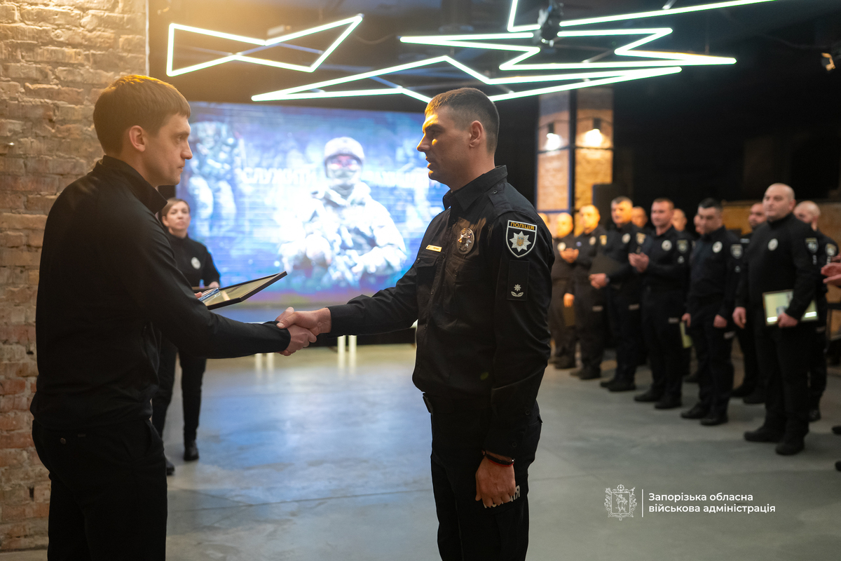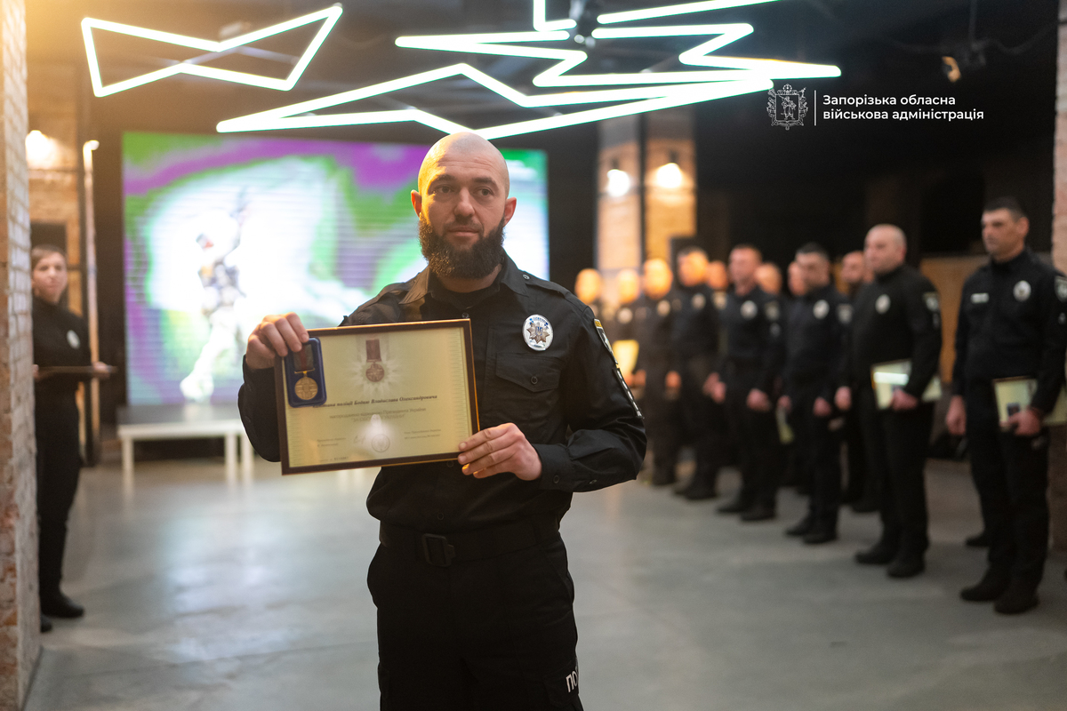 Державні нагороди отримали 36 правоохоронців Запорізької області. Серед нагороджених – бійці бойових підрозділів, вибухотехніки та оперативники з Пологівського, Василівського та Запорізького районів, які першими прибувають на місця обстрілів, рятують людей і навіть збивають ворожі дрони.