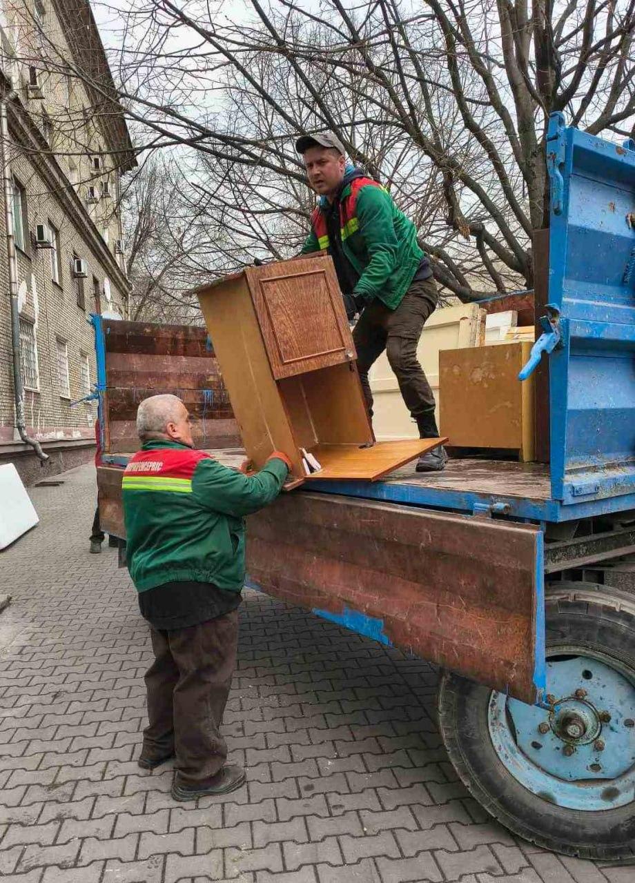 Паралельно роботи провели і в гуртожитку для ВПО у Вознесенівському районі, де зараз проводять ремонт – звідти вивезли старі меблі та непотрібні речі, щоб звільнити місце. З важкими вантажами допомагала аварійна служба.