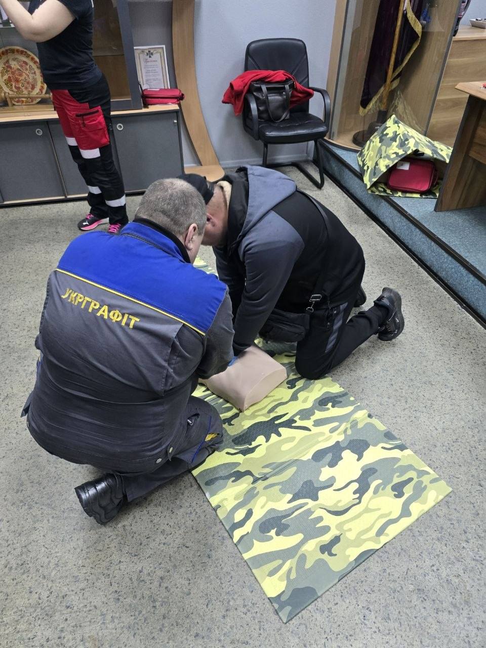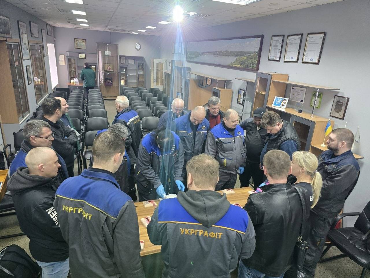 Під час тренінгу спільно з медиками працівники Укрграфіту відпрацювали алгоритми дій при невідкладних станах, опанували накладання турнікетів та компресію грудної клітки.
