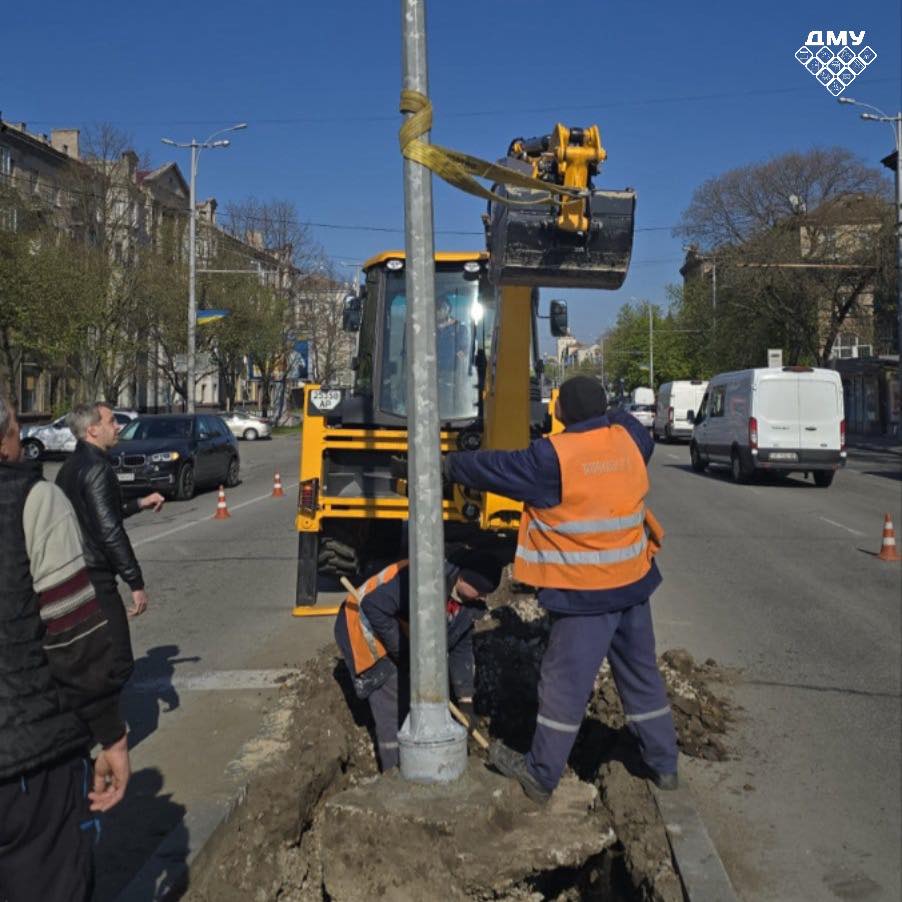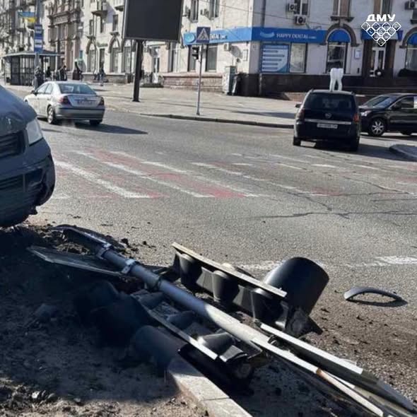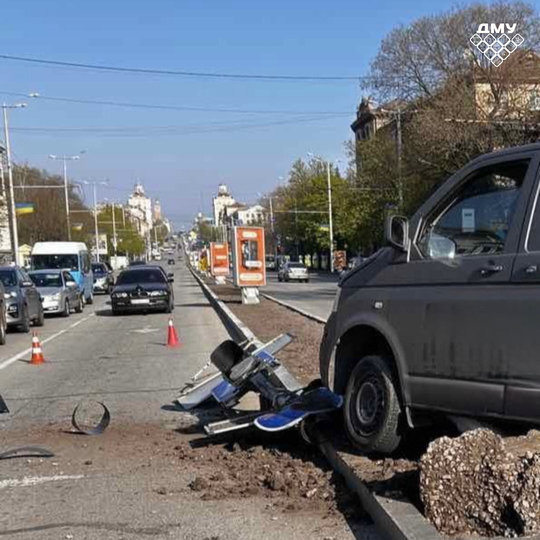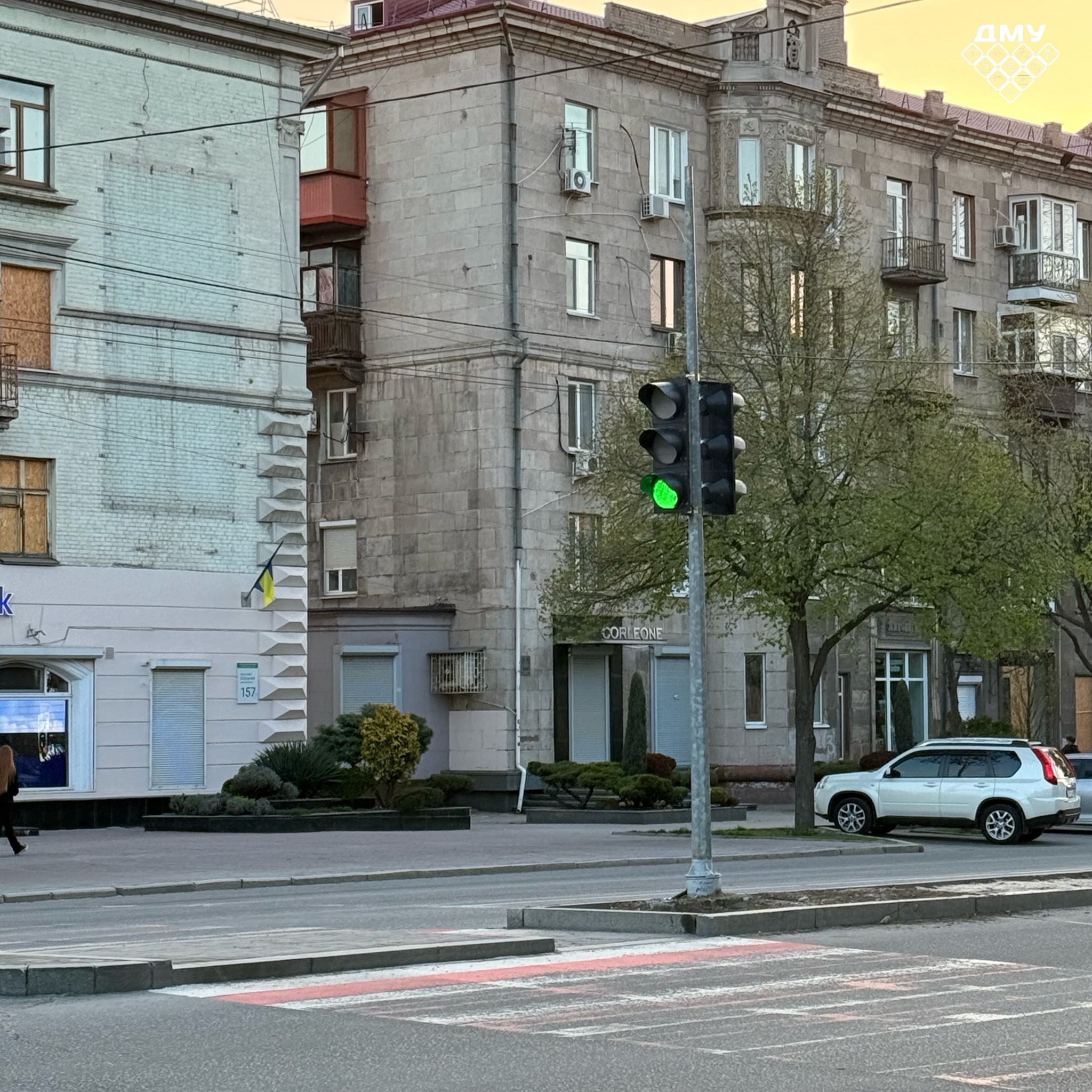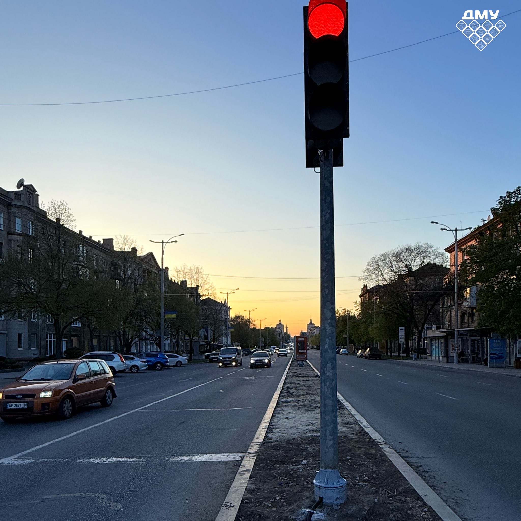 Фахівці Запоріжміськсвітла провели демонтаж зруйнованих конструкцій на перехресті проспекту Соборного та вулиці Миру. Замість розбитих секцій вже встановили нові.