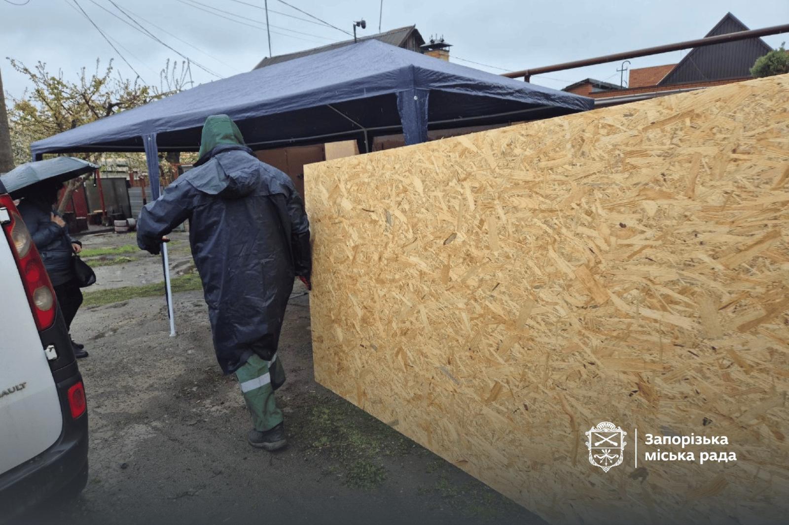 Комунальники відучора працюють у посиленому режимі. Станом на полудень 21 квітня працівники Запоріжремсервісу вже "закрили" вікна у 55 будинках, використавши 134 листи OSB.