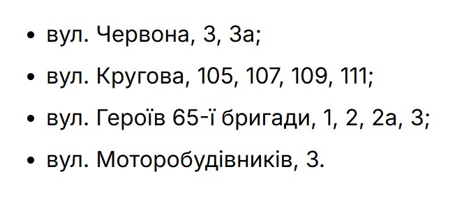 Адреси відключень: