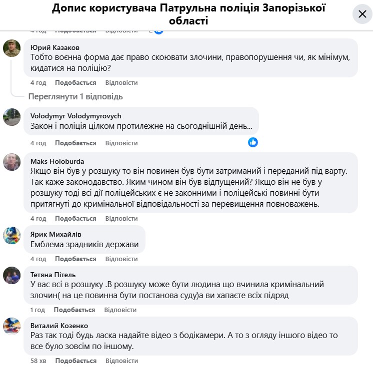 На сторінці патрульної поліції в Facebook користувачі активно коментують інцидент.