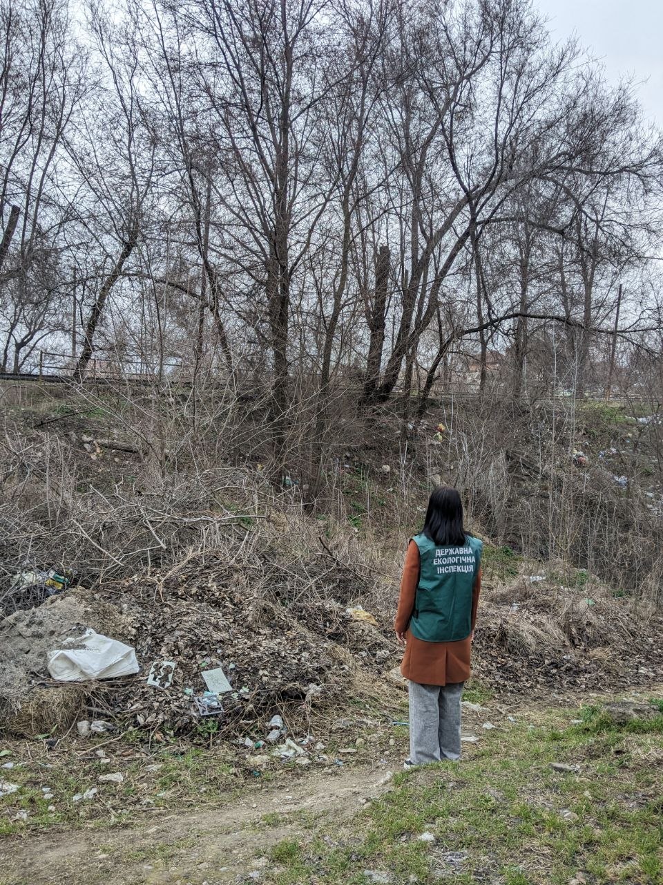 Під час перевірки фахівці Держекоінспекції виявили стихійне сміттєзвалище поблизу багатоповерхівки № 95 на вулиці Чарівній. Серед сміття переважали побутові відходи, пляшки, коробки та сухостій.