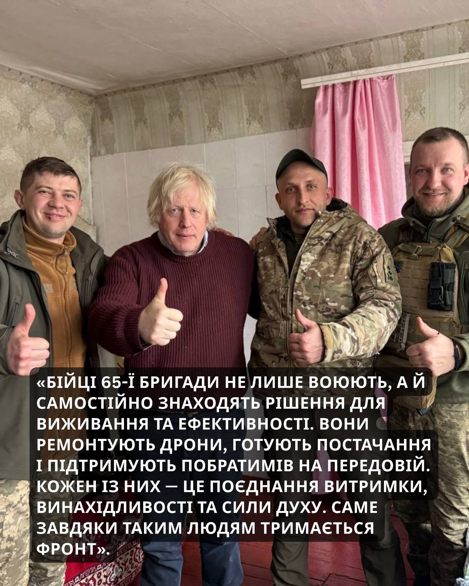 Британський політик і журналіст Борис Джонсон відвідав українських воїнів на Запорізькому фронті. Про це повідомили військові 65-ї окремої механізованої бригади, передає "Справжнє".