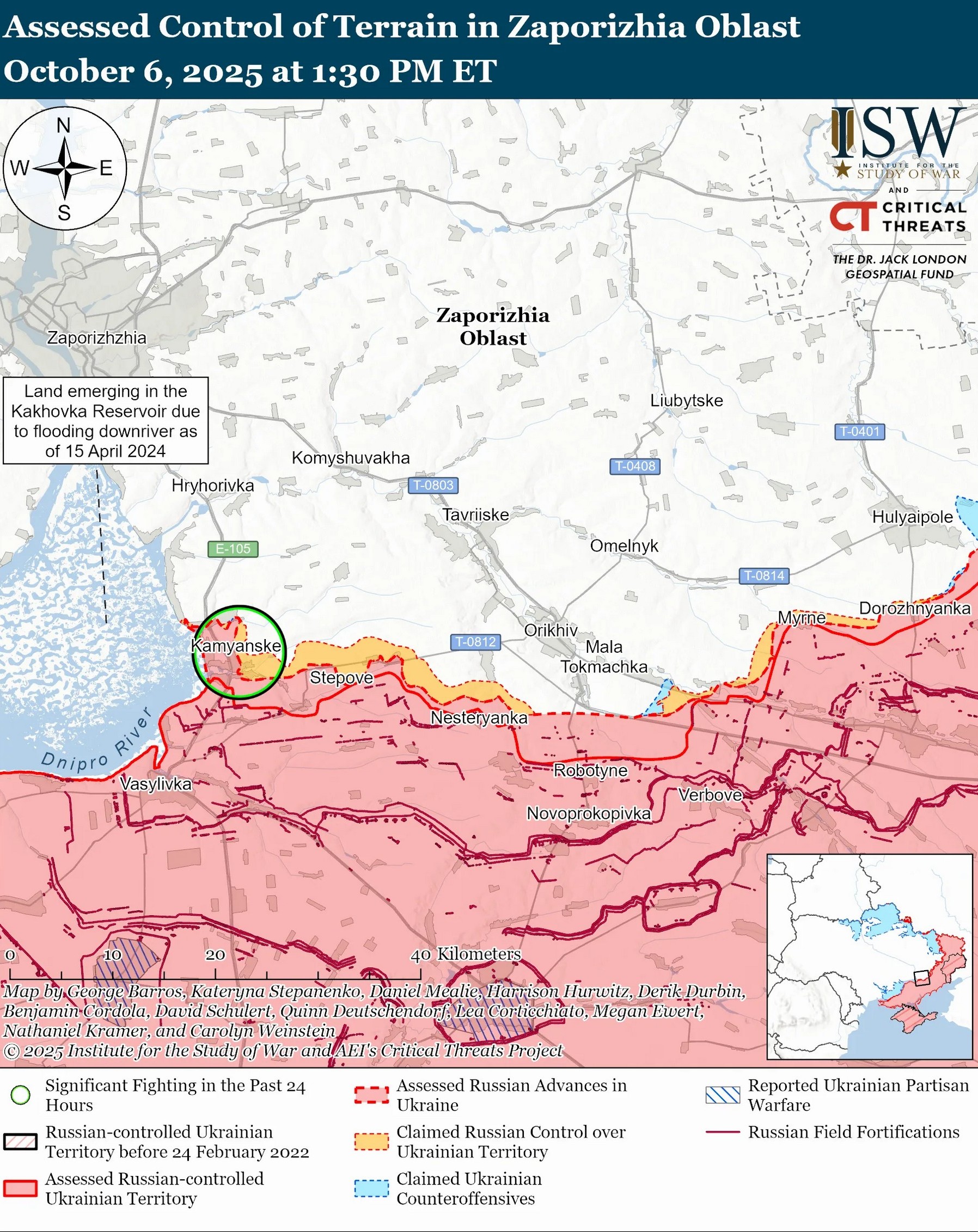 Протягом понеділка, 6 жовтня, окупаційним військам РФ не вдалося просунутися ані на сході, ані на заході Запорізької області. Про це заявили в американському Інституті вивчення війни (ISW), інформує "Справжнє".