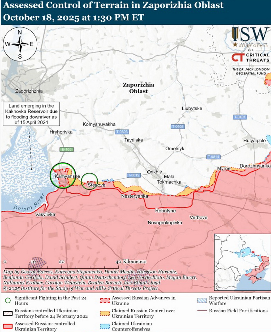 Разом із тим аналітики повідомляється, що протягом минулої доби, 18 жовтня, окупанти не мали просувань на Гуляйпільському і Оріхівському напрямках у Запорізькій області.