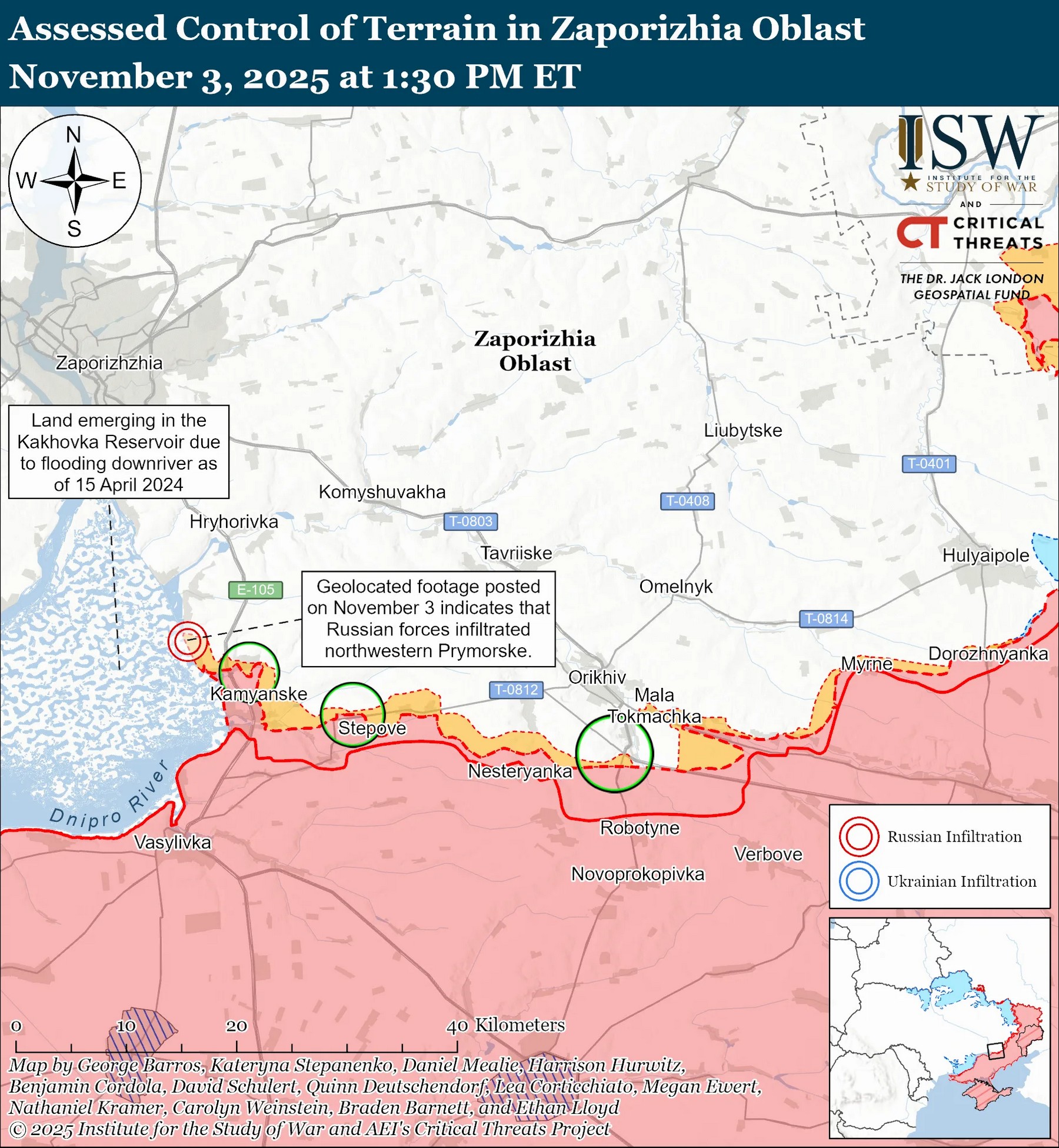 "На геолокаційних відеозаписах, опублікованих 3 листопада, видно, як українські війська завдають удару по російських позиціях у центрі Приморського, що, за оцінкою ISW, було місією з інфільтрації. Ця місія з інфільтрації не змінила контролю над місцевістю чи переднім краєм зони бойових дій", – стверджують американські аналітики.