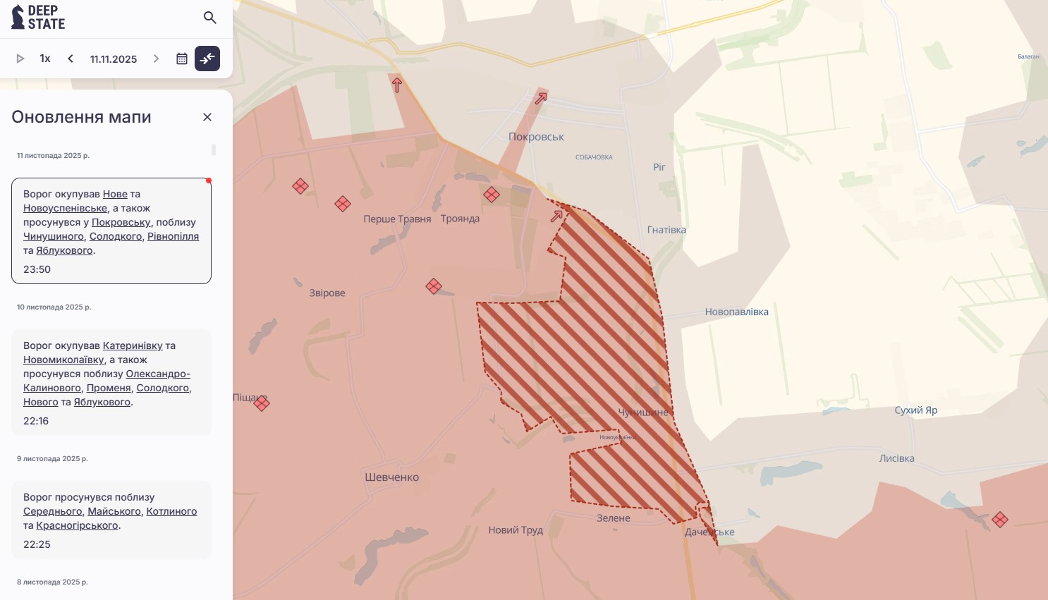 Окрім того, ворог мав успіхи у Покровську та селищі Чунишине Покровського району Донецької області.