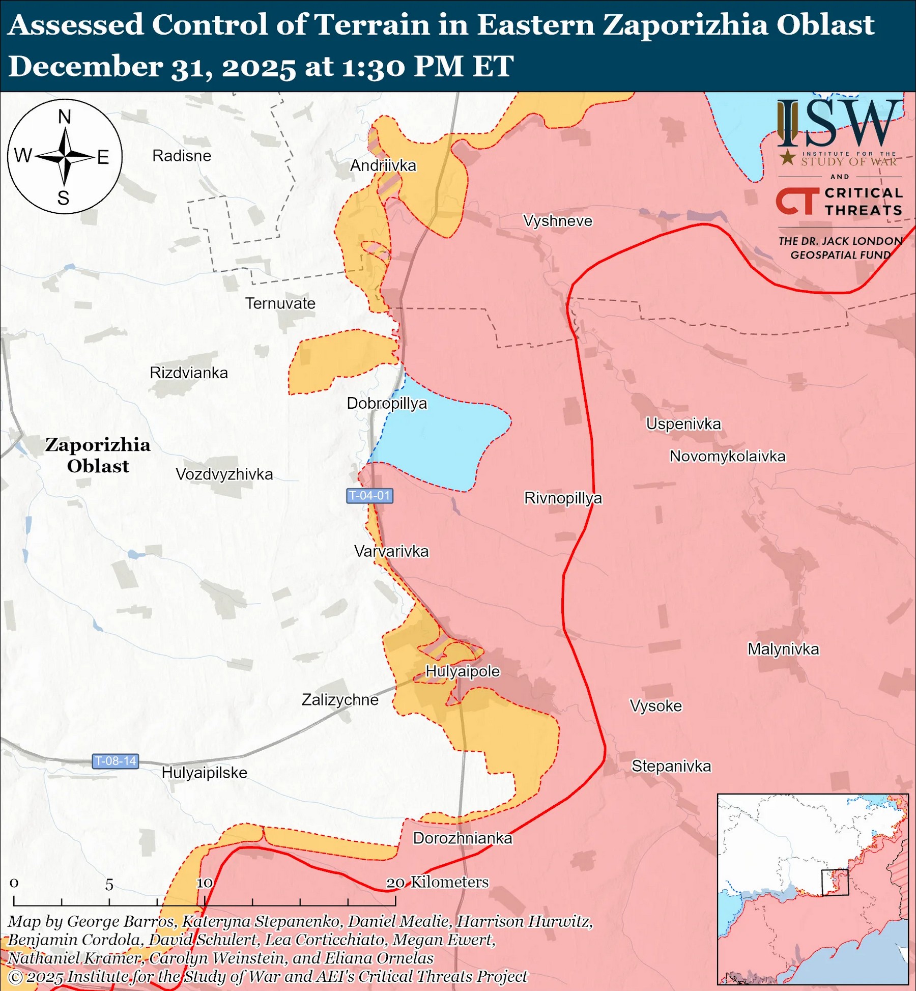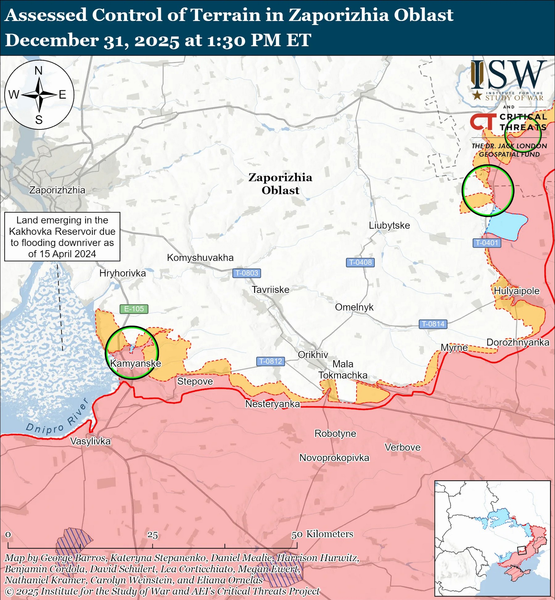 "Геолокаційні відеозаписи, опубліковані 30 грудня, свідчать про те, що українські війська нещодавно просунулися в межах Степногірська (на захід від Оріхова)", – оцінюють в ISW.