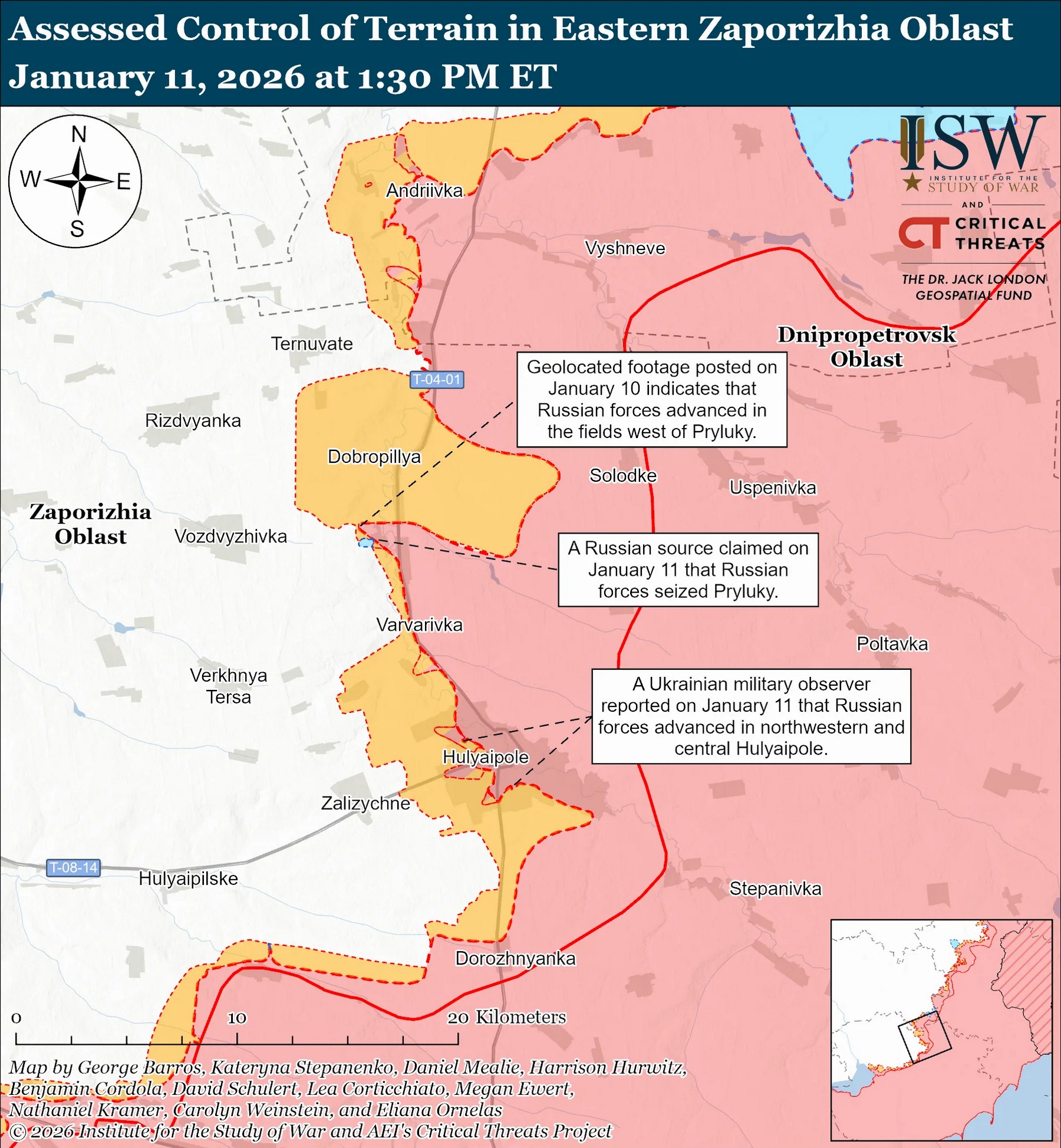 Однак, нещодавно російські війська знову мали успіхи на сході Запорізької області. Американські експерти, посилаючись на українські джерела, у новому звіті за 11 січня говорять про рух ворога в північно-західній та в центральній частині Гуляйполя.