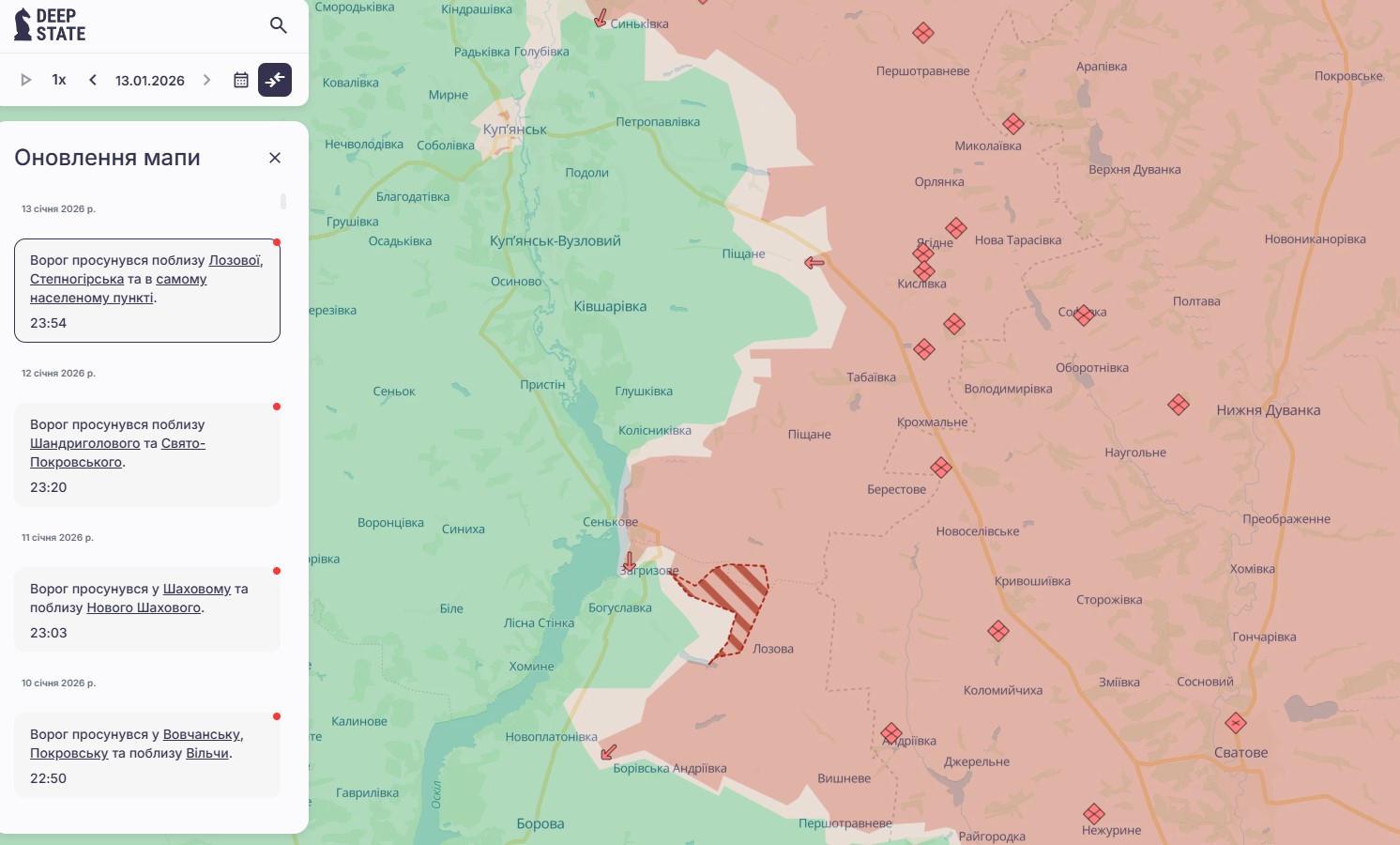 Також, за даними аналітиків, загарбники просунулися в районі села Лозова Ізюмського району Харківської області.
