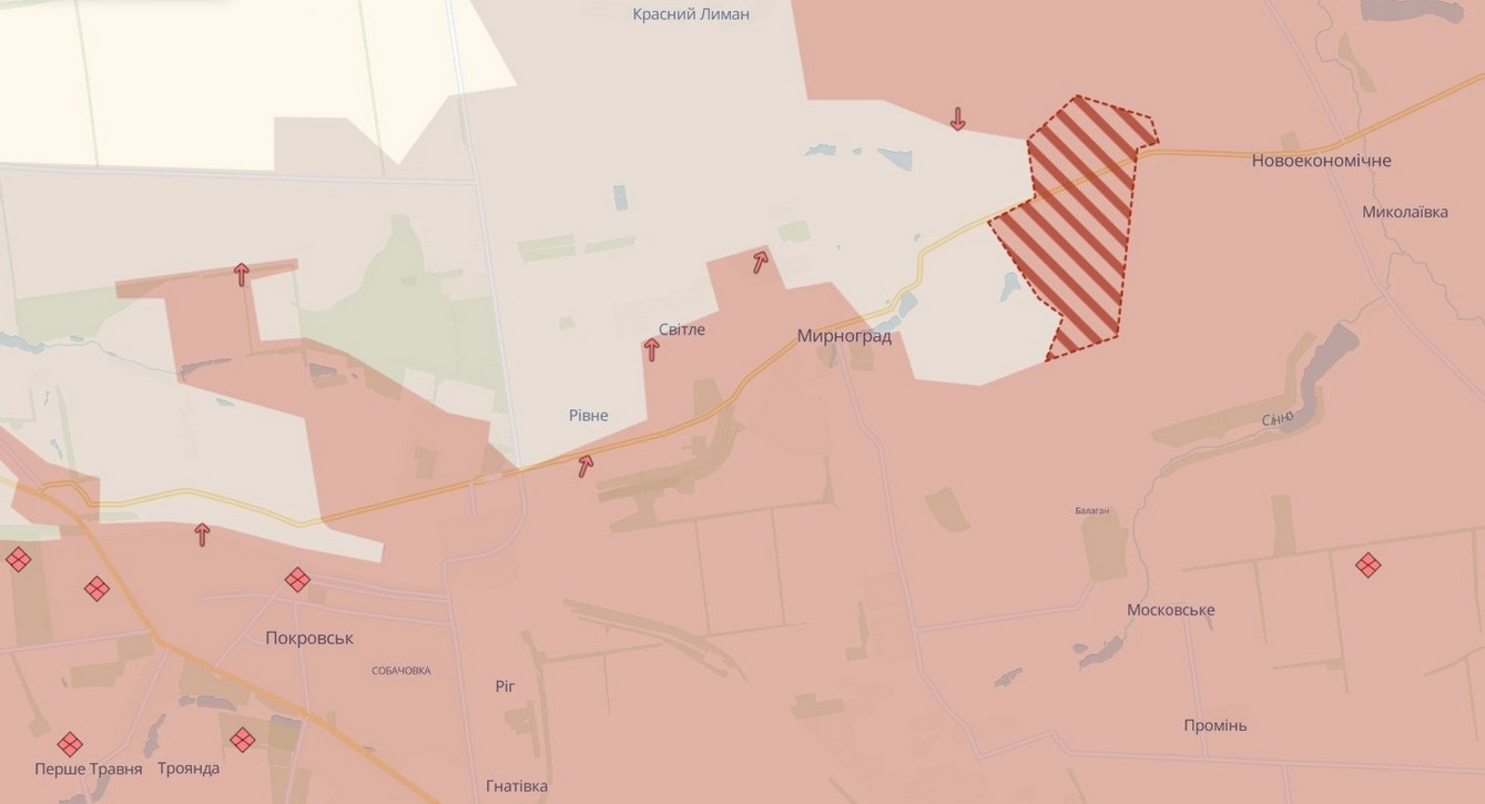 Також нещодавно росіяни мали успіхи поблизу міста Мирноград Покровського району. Водночас, за даними експертів, Сили оборони зачистили від ворога село Сухецьке Покровського району Донецької області.