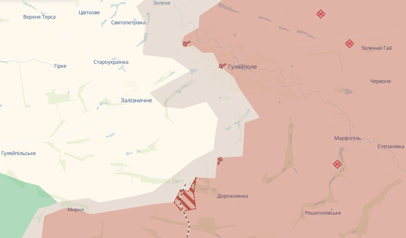 Російські окупаційні війська продовжують просуватися біля Гуляйполя Запорізької області. Загарбники мали успіхи в районі села Дорожнянка Пологівського району, передає "Справжнє".