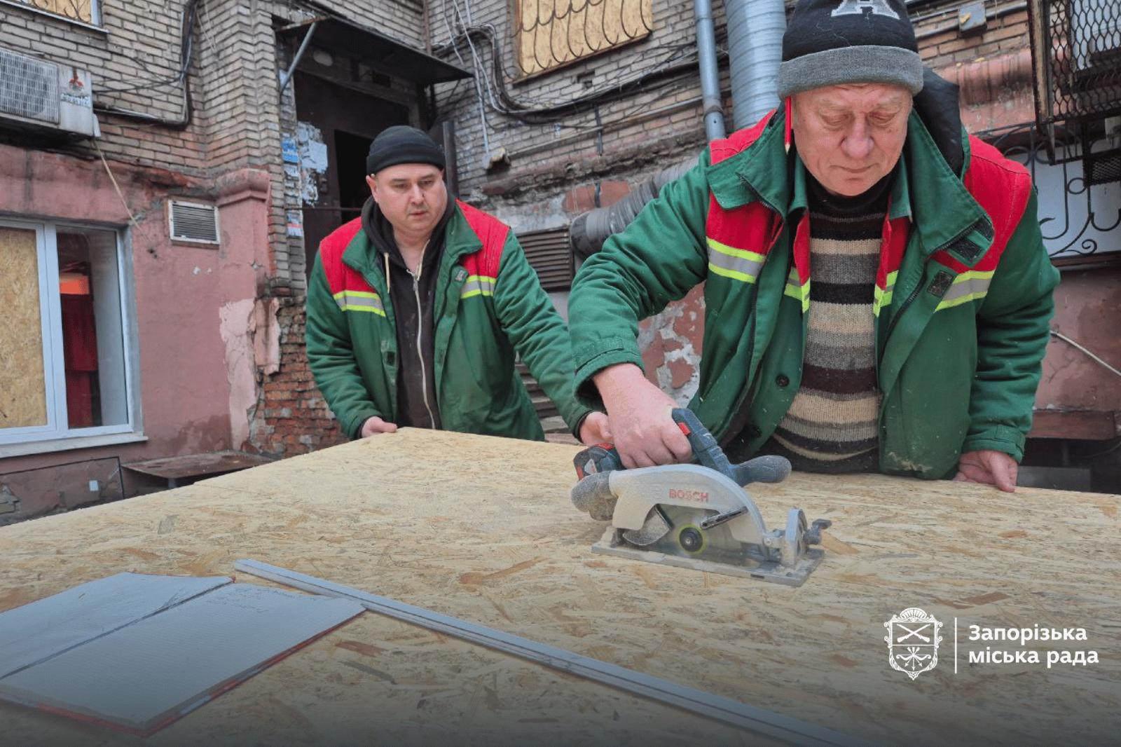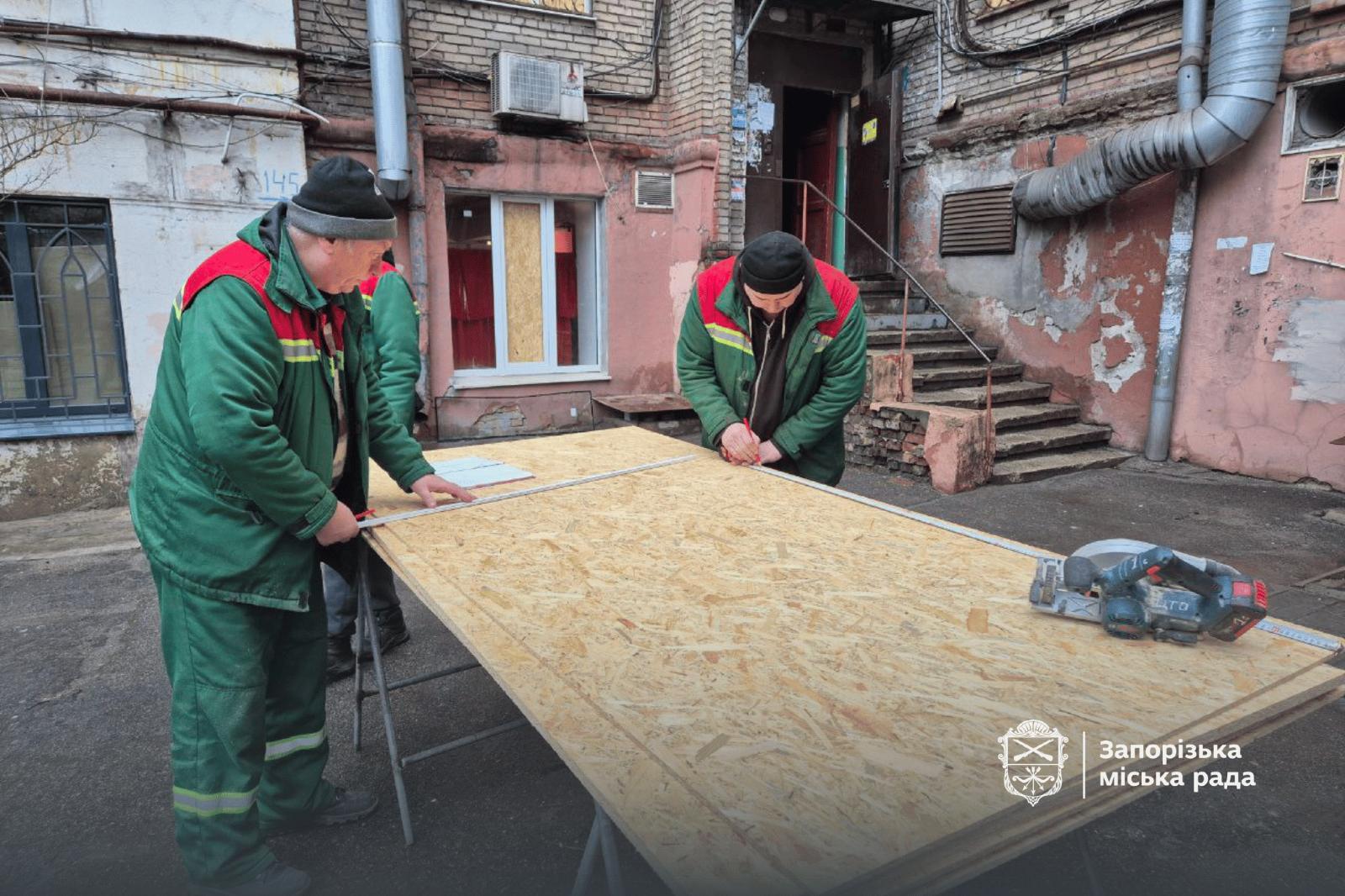 Станом на полудень працівники Запоріжремсервісу вже залатали вибиті вікна плитами OSB у восьми багатоповерхівках. Зараз триває детальне обстеження територій для уточнення масштабів пошкоджень.