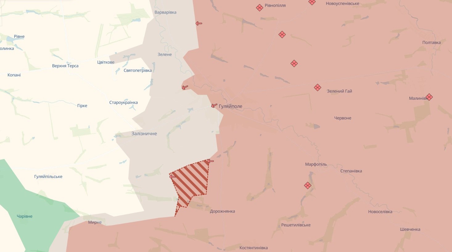 Російські окупаційні війська просунулися біля Гуляйполя Запорізької області. Загарбники мали успіхи поблизу села Дорожнянка Пологівського району, передає "Справжнє".