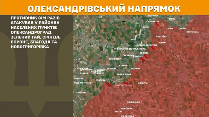 На Олександрівському напрямку противник атакував біля Новогригорівки.